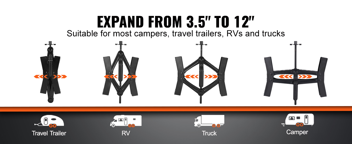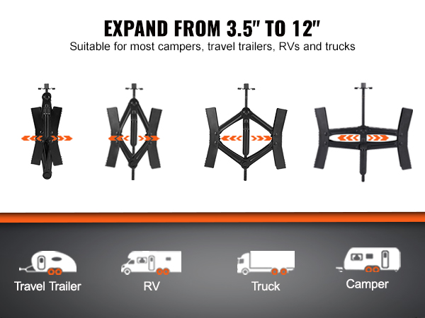 Extends from 3.5" to 12", the RV wheel locks are suitable for most campers, travel trailers, RVs, and trucks.