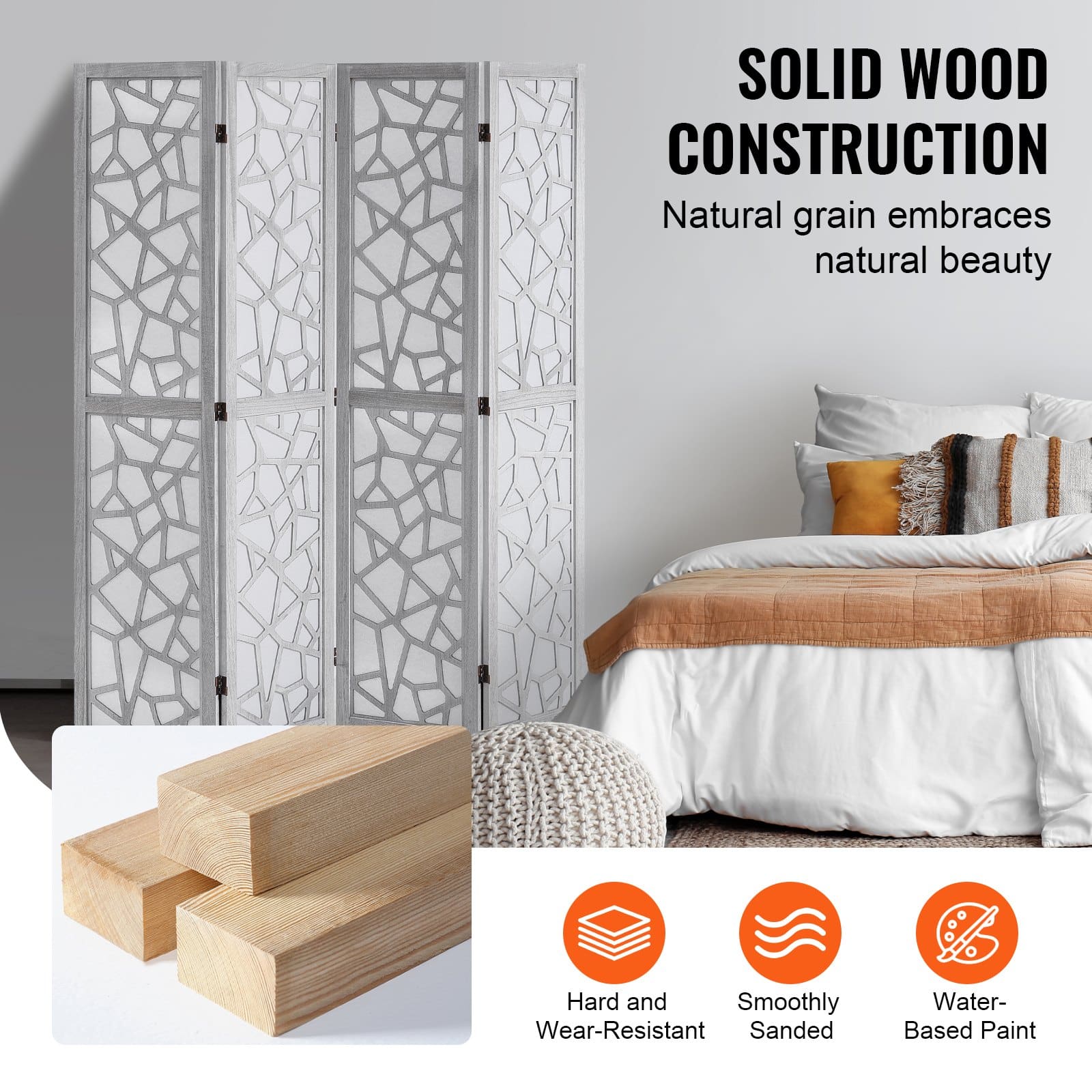VEOVR Stylish 4 Panels Wooden Room Divider