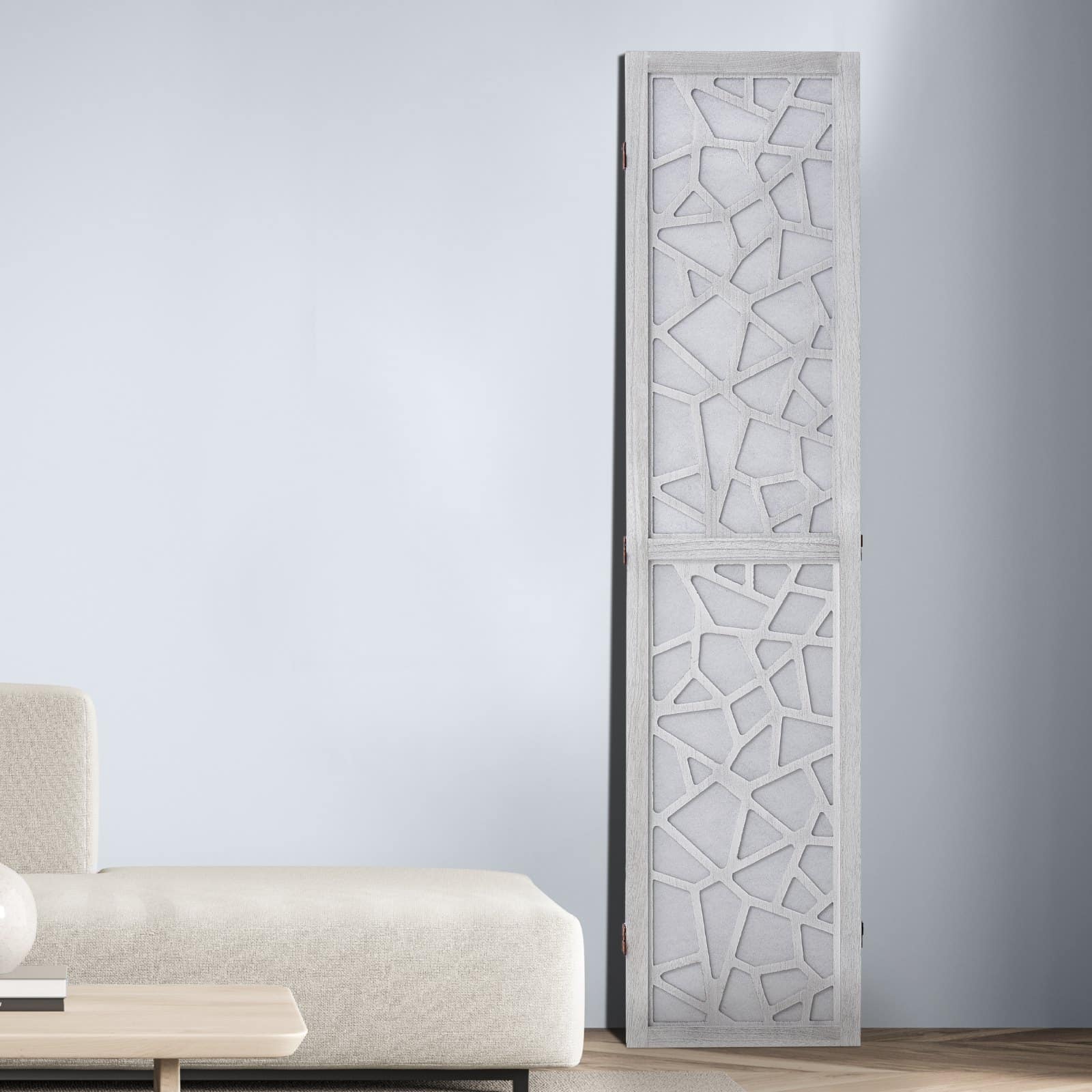 Use this wooden partition to separate spaces in your living room or bedroom, position it by the window to block bright sunlight, or utilize it as a stunning backdrop for your videos.