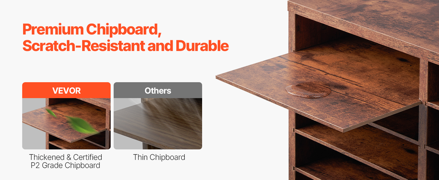 Our wood literature organizer is built from durable P2 particle board and is EPA certified, ensuring it's secure for you and your family to use. The smooth, polished surface is waterproof, scratch-resistant, and easy to clean, making it ideal for busy workplaces.