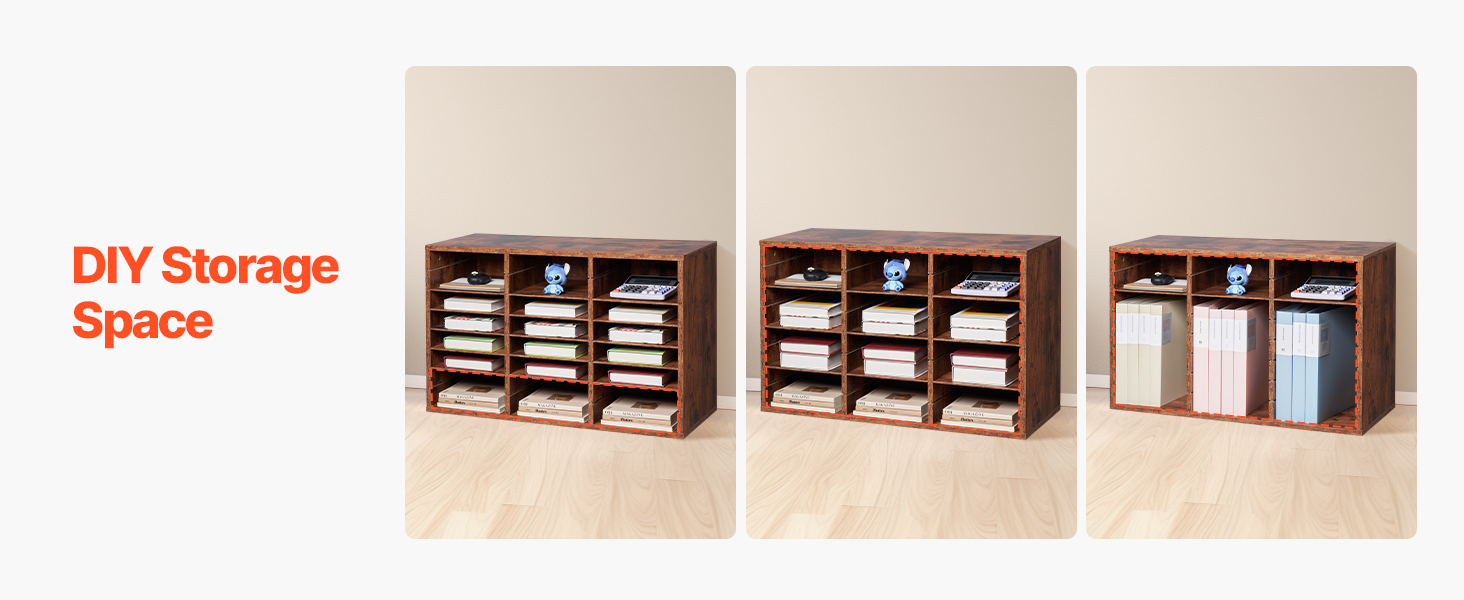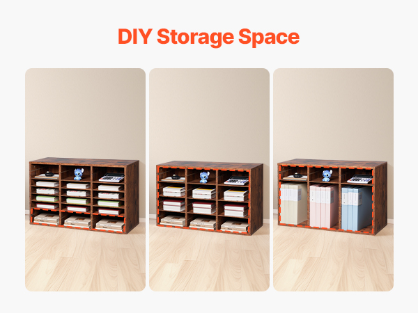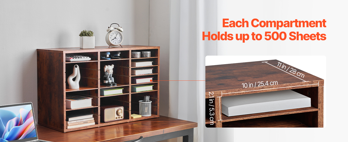 VEVOR Literature Organizer, 24 Compartments Office Mailbox with Removable Shelves, Wooden Mailbox Sorter Particle Board Office Home Classroom Storage, File Sorter for Documents, Papers, Dark Brown