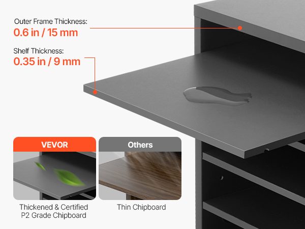 • Built to Last: Our wood literature organizer is made from sturdy P2 particle board and MDF, each shelf holding up to 22 lbs / 10 kg. Whether you’re storing heavy files or everyday items, this organizer stands strong. Plus, it’s EPA certified, so it’s secure for you and your family. The smooth, polished surface is waterproof, scratch-resistant, and easy to wipe clean.