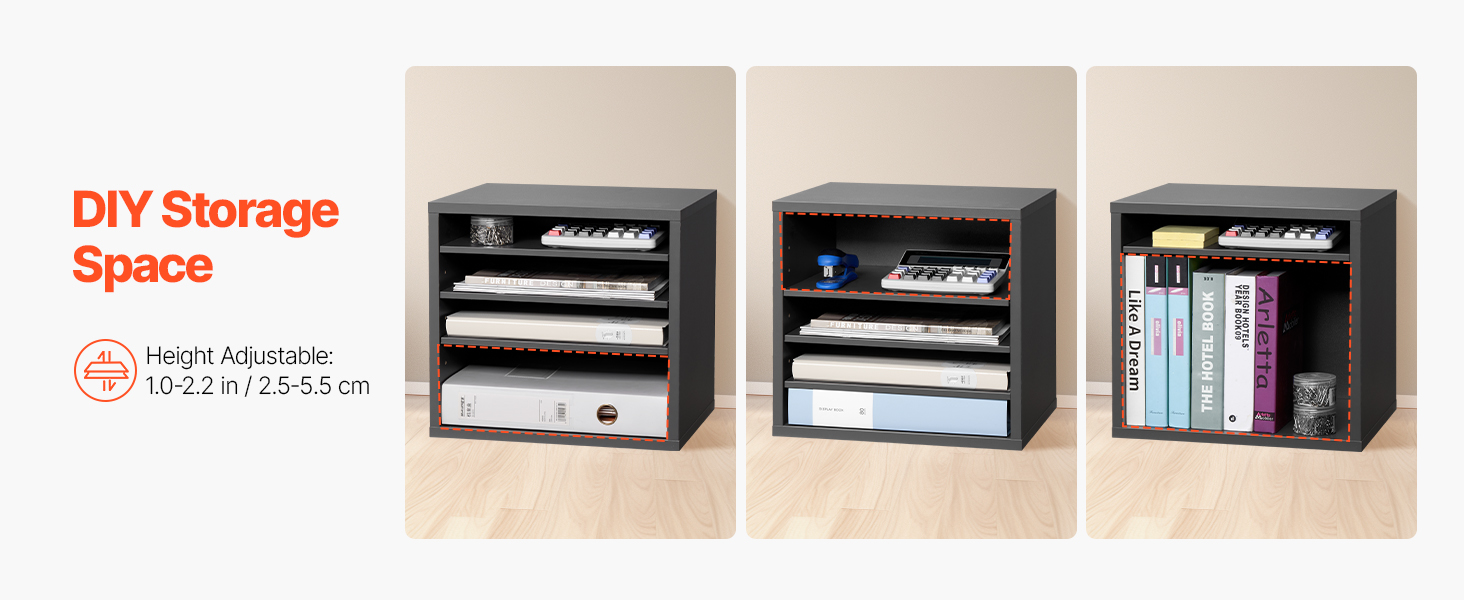 • Customizable Storage: Tailor the office mailbox to fit your needs! Each compartment measures 9.2 x 11.1 x 2.2 inches / 234 x 282 x 56 mm and can hold up to 500 sheets of A4 paper. With adjustable shelf heights ranging from 1.0-2.2 inches / 2.5-5.5 cm, you can easily modify or remove shelves to accommodate larger files or office supplies.