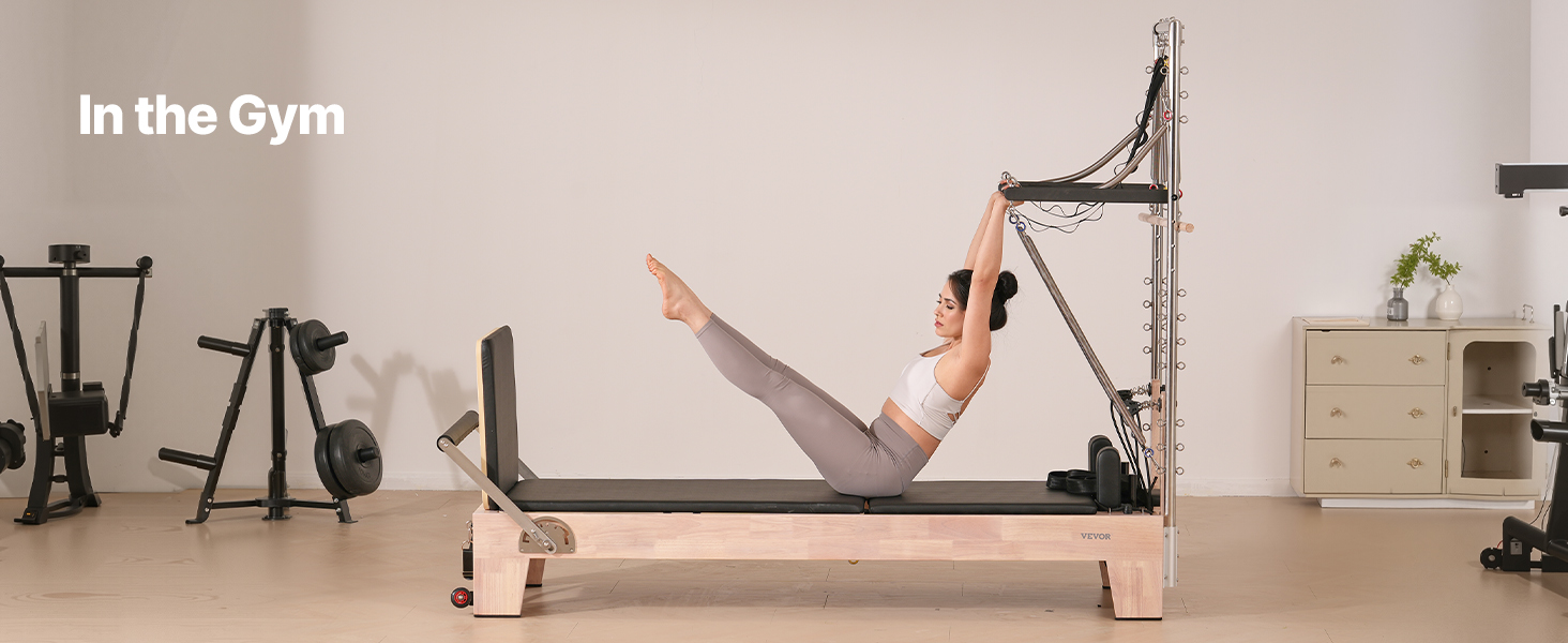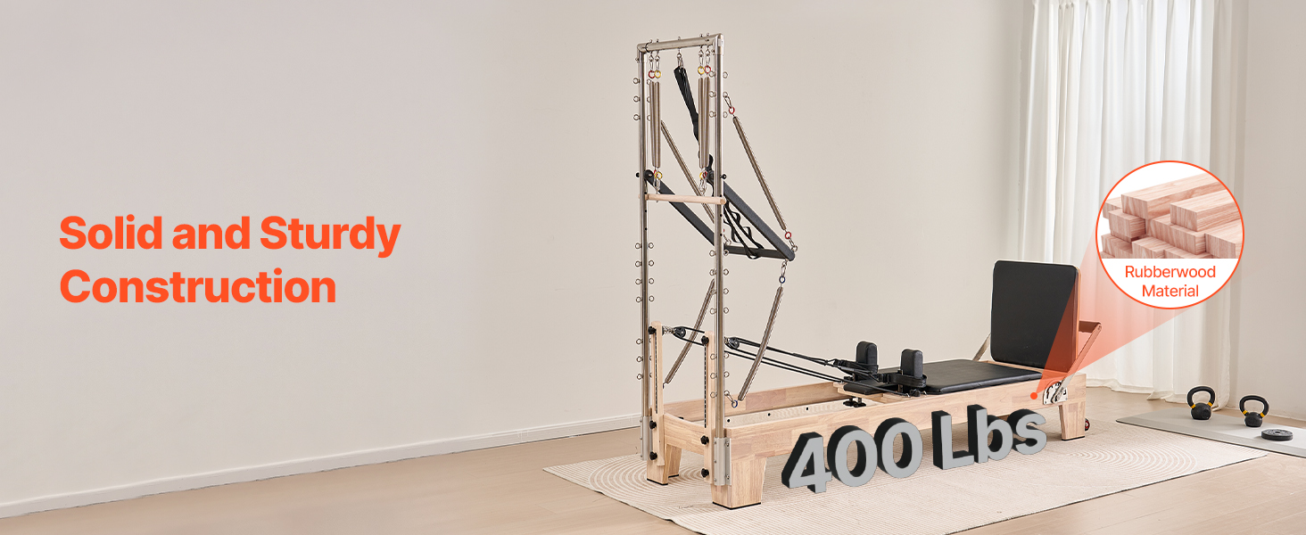 VEVOR Wooden Pilates Reformer Machine with Box & Jump Board, Dual Resistance, Home Studio Equipment, Max Load 181 kg