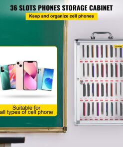 VEVOR Cell Phone Storage Cabinet with 36 Slots, Aluminum, Wall-Mounted Locker with Key Lock & Tags, for Classroom/Office/Gym