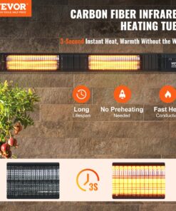 VEVOR 3000W Infrared Electric Outdoor Heater with Remote, 9 Heat Levels, Timer & IP65, Wall Mount for Patio, Studio, Backyard