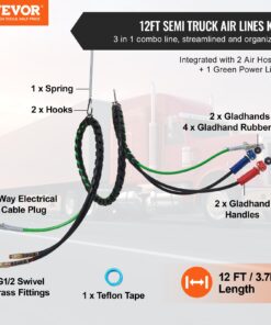 VEVOR 4.6m 3-in-1 Semi Truck Air Brake Line Kit with 2 Glad Hands, Handles, 7-Way Power Cord & Seals