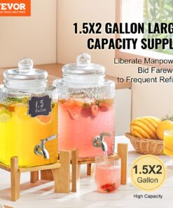 VEVOR 5.7L Glass Drink Dispenser with Stainless Steel Spigot and Wooden Stand for Parties and Events