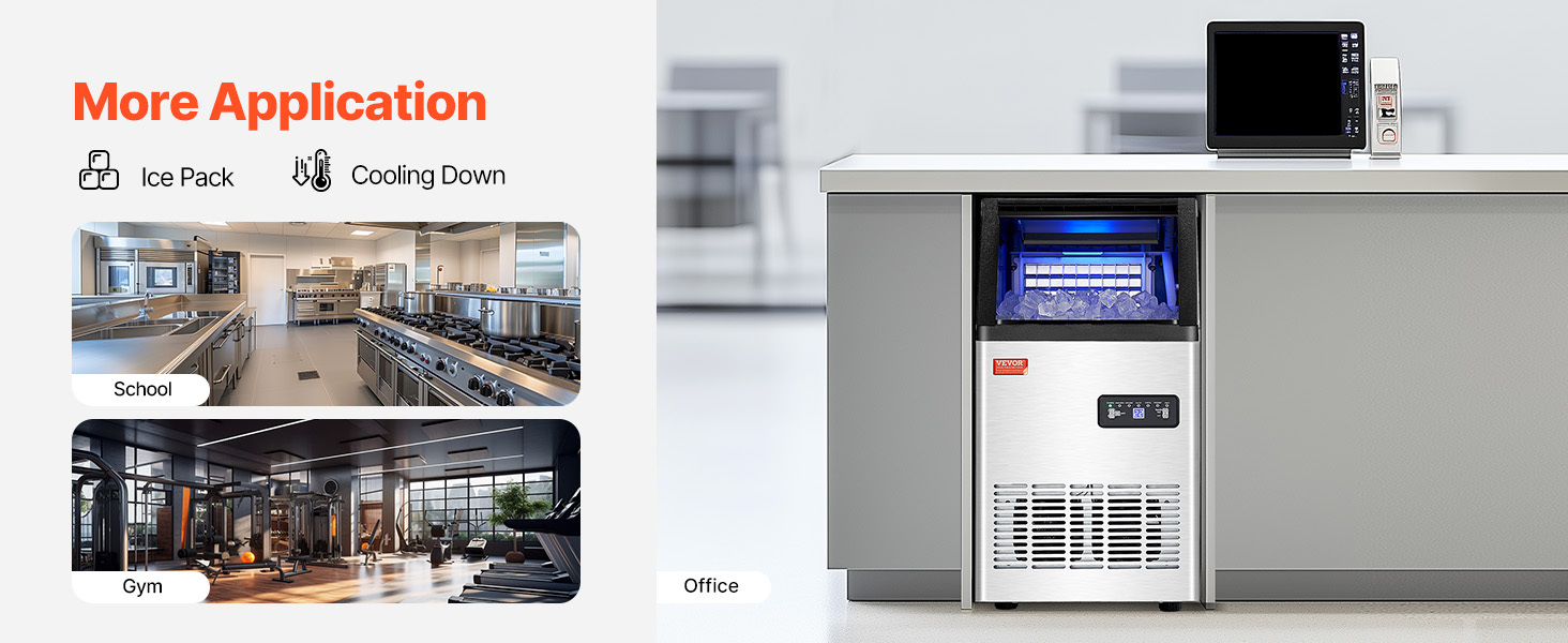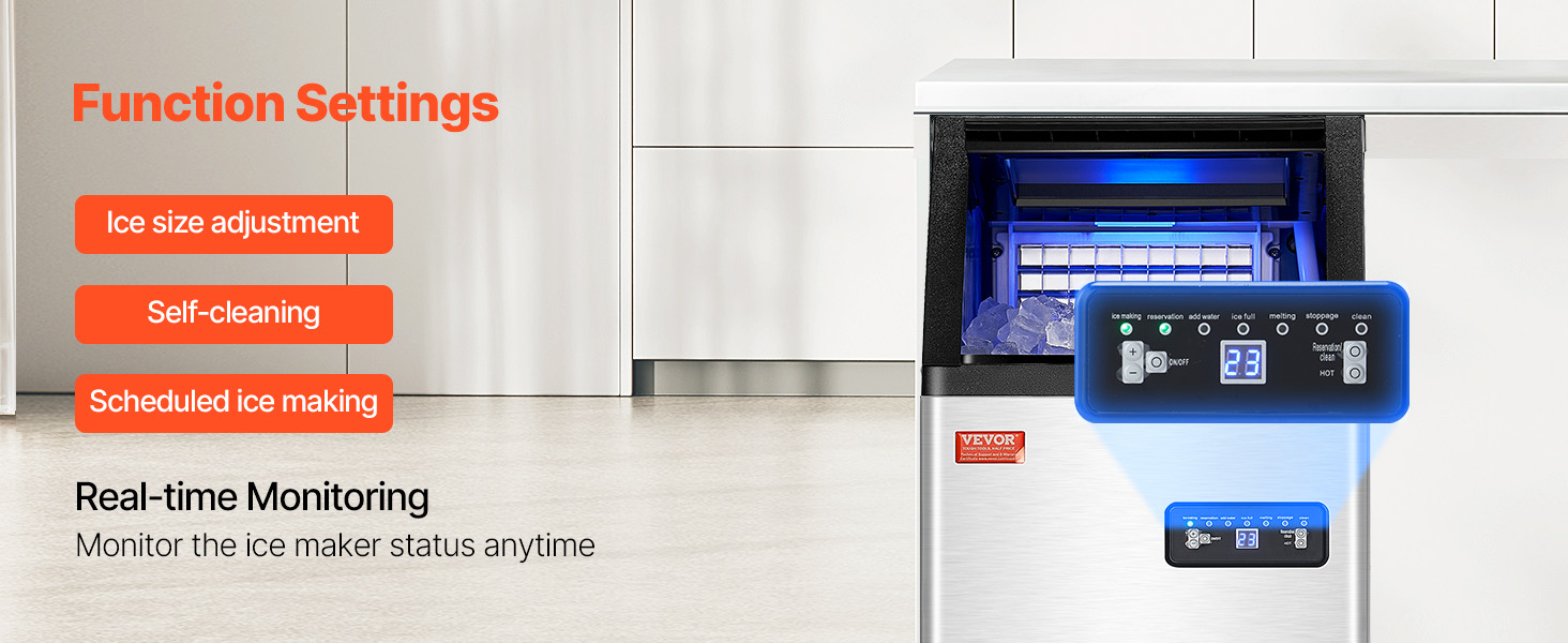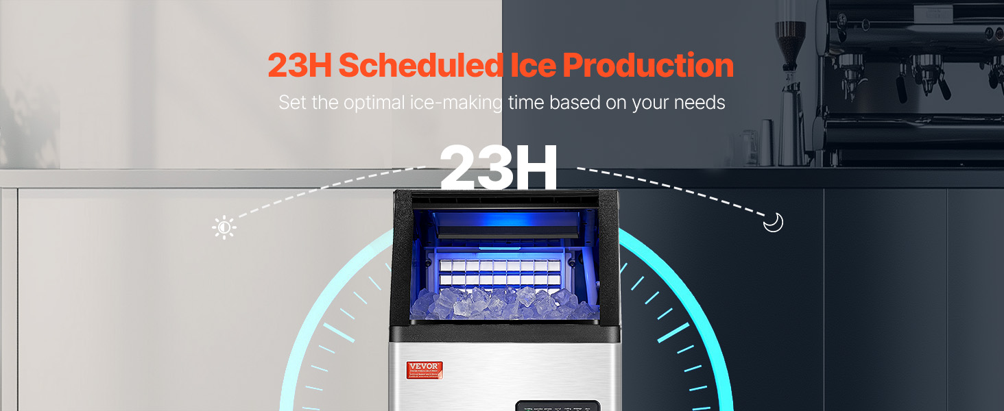 Meie äri jäämasin toodab 100 lbs jääkuubikud päevas, ja 8-tunnise isolatsioon funktsioon võimaldab sul on jääkuubikud, kui soovite.