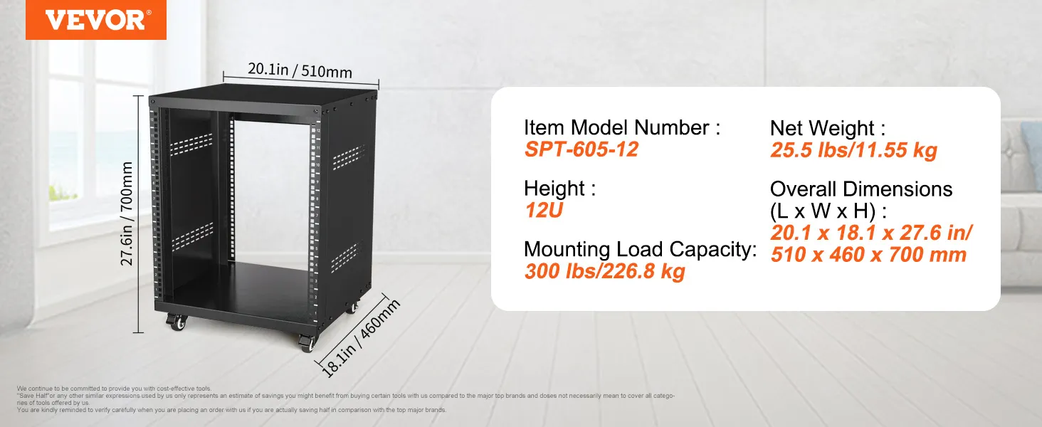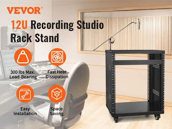 VEVOR 12U AV Rack Stand 226.8 kg Capacity Network Stereo Recording Studio Rack 510x460x700mm