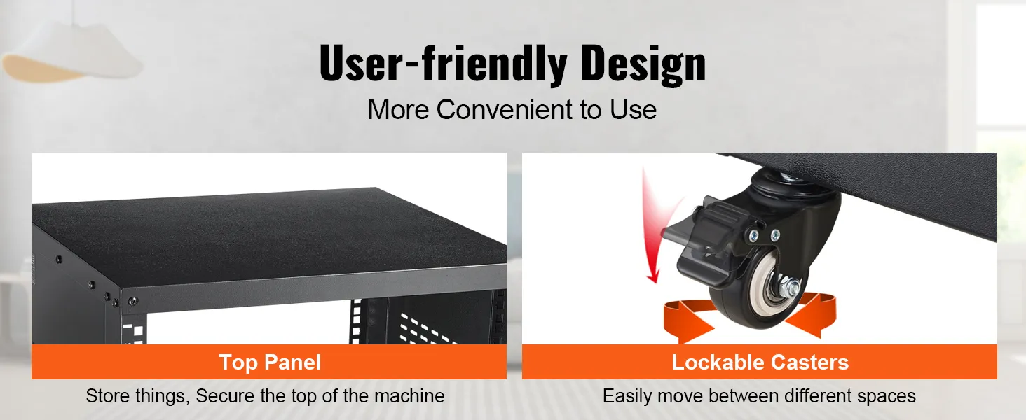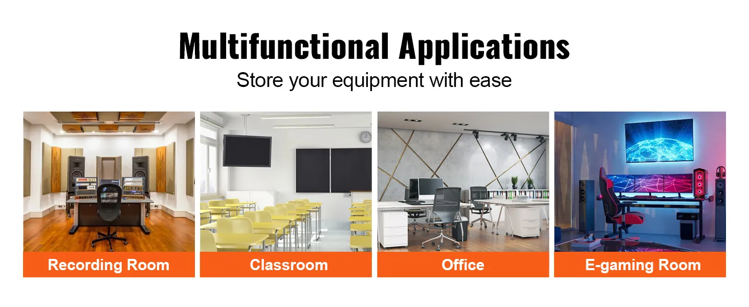 Our audio equipment rack features a semi-open design that provides easy accessibility and ample space. With complete accessories and a solid metal structure, it supports up to 500 lbs (226.8 kg), allowing you to keep your gear secure and organized, such as A/V gear, amplifiers, and more.