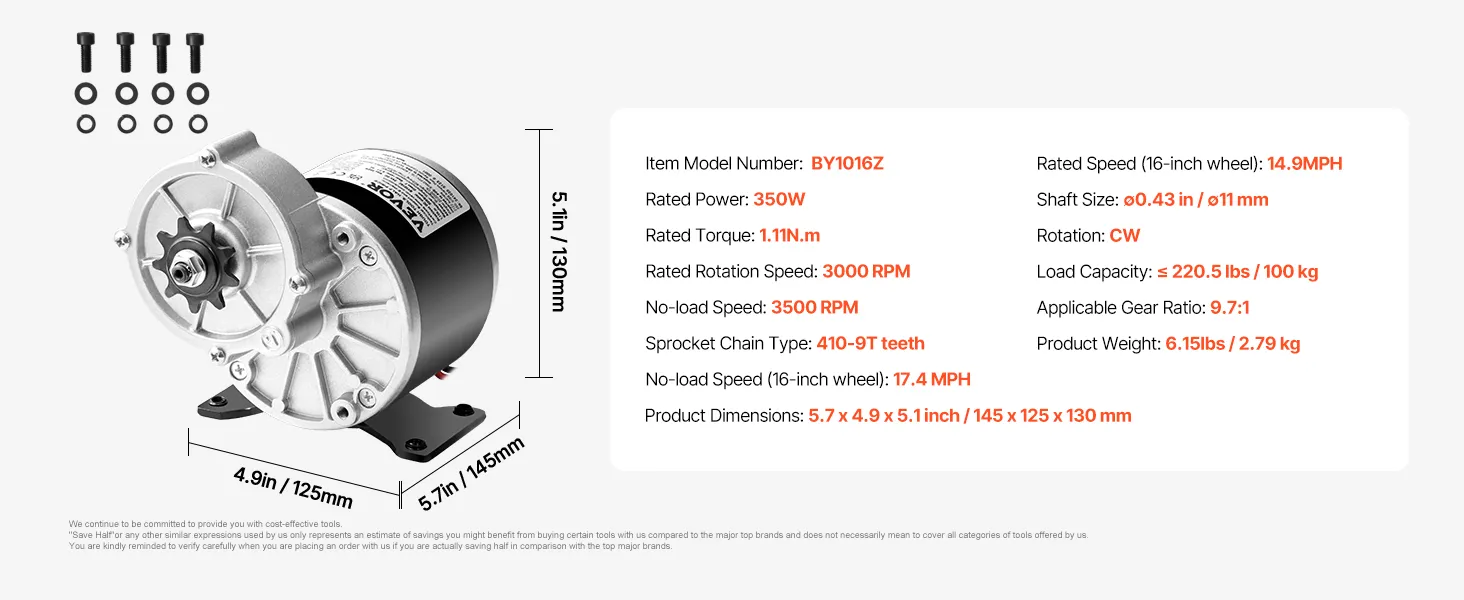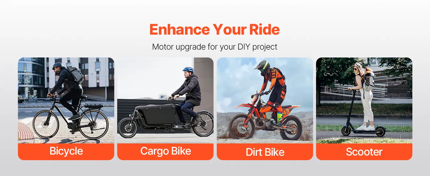 Take your DIY projects with our powerful DC motor, designed to elevate the performance of your electric bikes and scooters. Whether you're looking to boost speed, increase torque, or improve overall efficiency, it provides the perfect solution for customizing your ride.