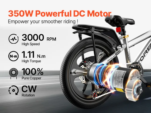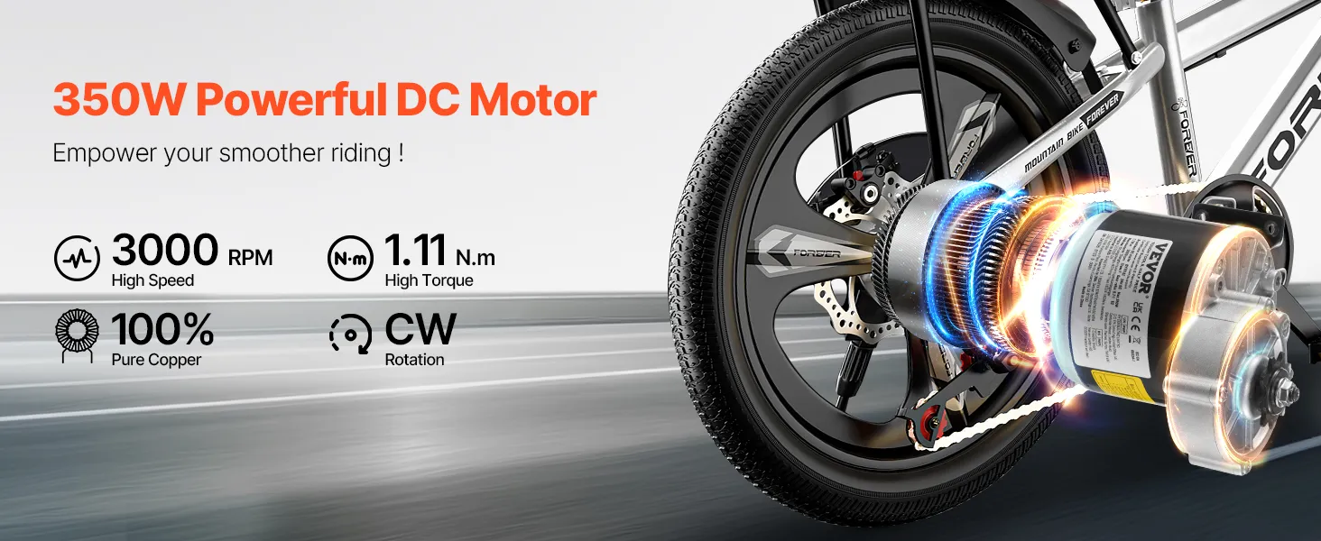 Upgrade your ride with confidence and experience enhanced power, reliability, and enjoyment with the 24V 350W powerful brushed DC motor, 1.11 N.m rated torque, high speed, and CW direction control. Effortlessly conquer uphill climbs and navigate challenging terrains with ease.