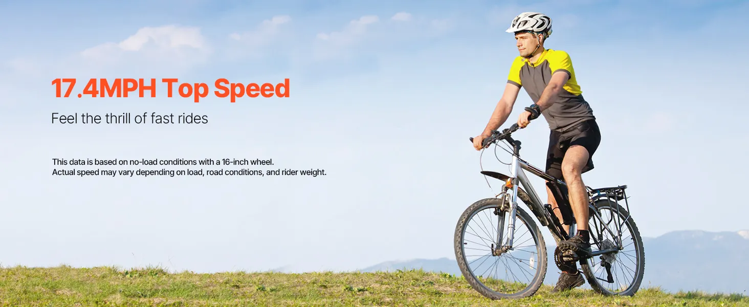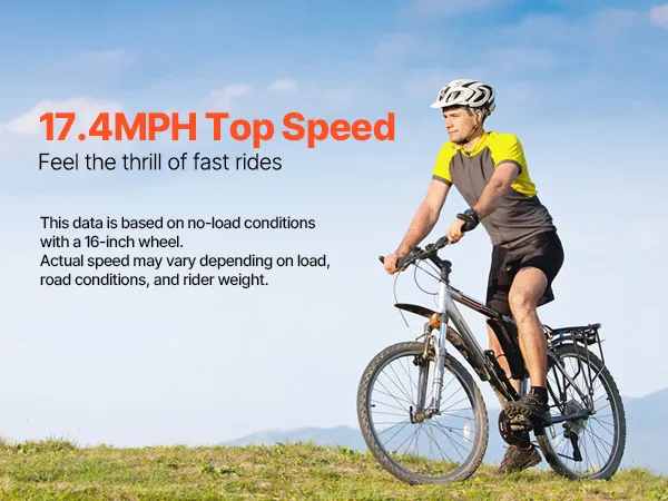 Kogemused ülim põnevus koos 17.4 MPH koormuseta kiirus! Tunda elevus kiire seljas, mis teeb iga reisi meeldejäävaks. (Selle tippkiirus on aluseks ei-koormuse tingimustes koos 16-tolline ratas — tegelik kiirus võib erineda sõltuvalt koormusest, teeolude ja sõitja kaalust)