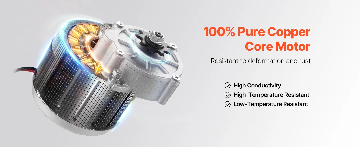 100% puhas vask südamik mootor pakub erakordse vastupanu deformatsioon ja rooste, millel on kõrge elektrijuhtivus ja optimaalse tõhususe. See tagab sujuva ja rahulik sõita, parandada oma üldist kogemust.