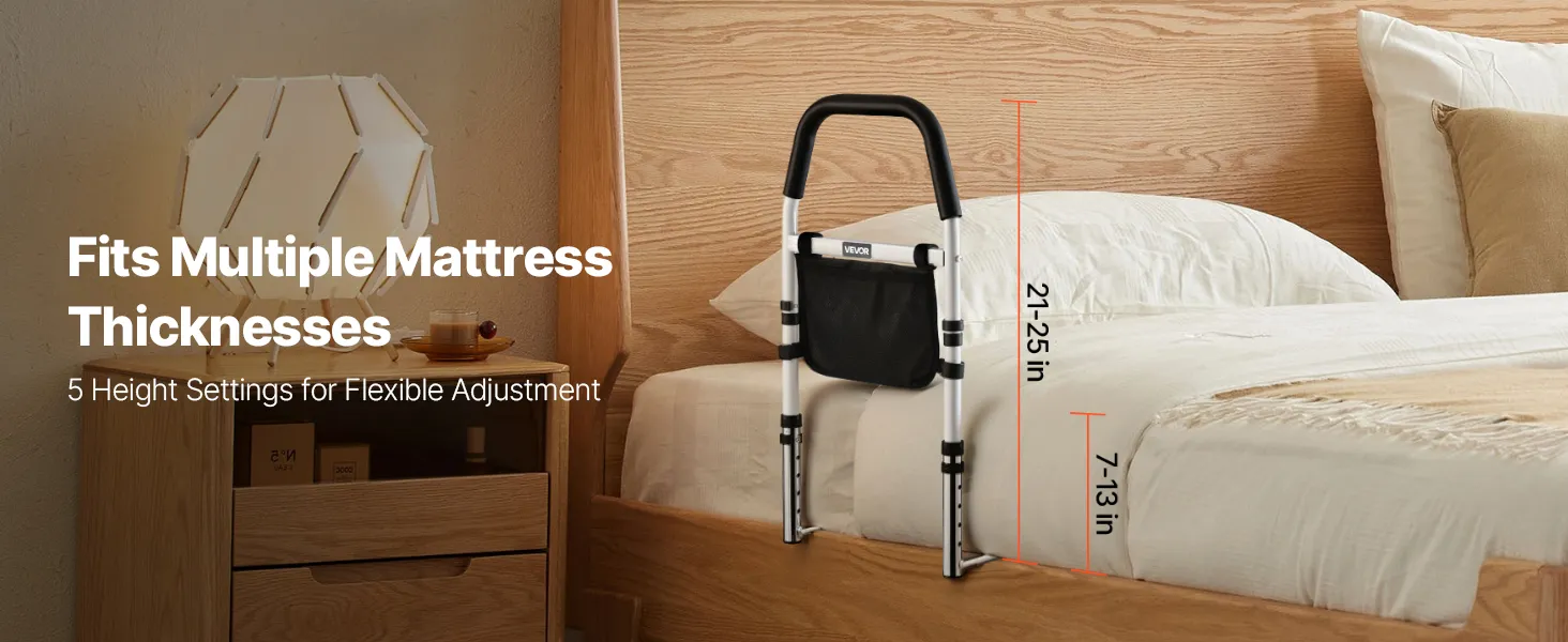 Easily fits both thin and thick mattresses, reducing concerns about size mismatch or difficult installation, greatly enhancing the bed side rail’s versatility.
