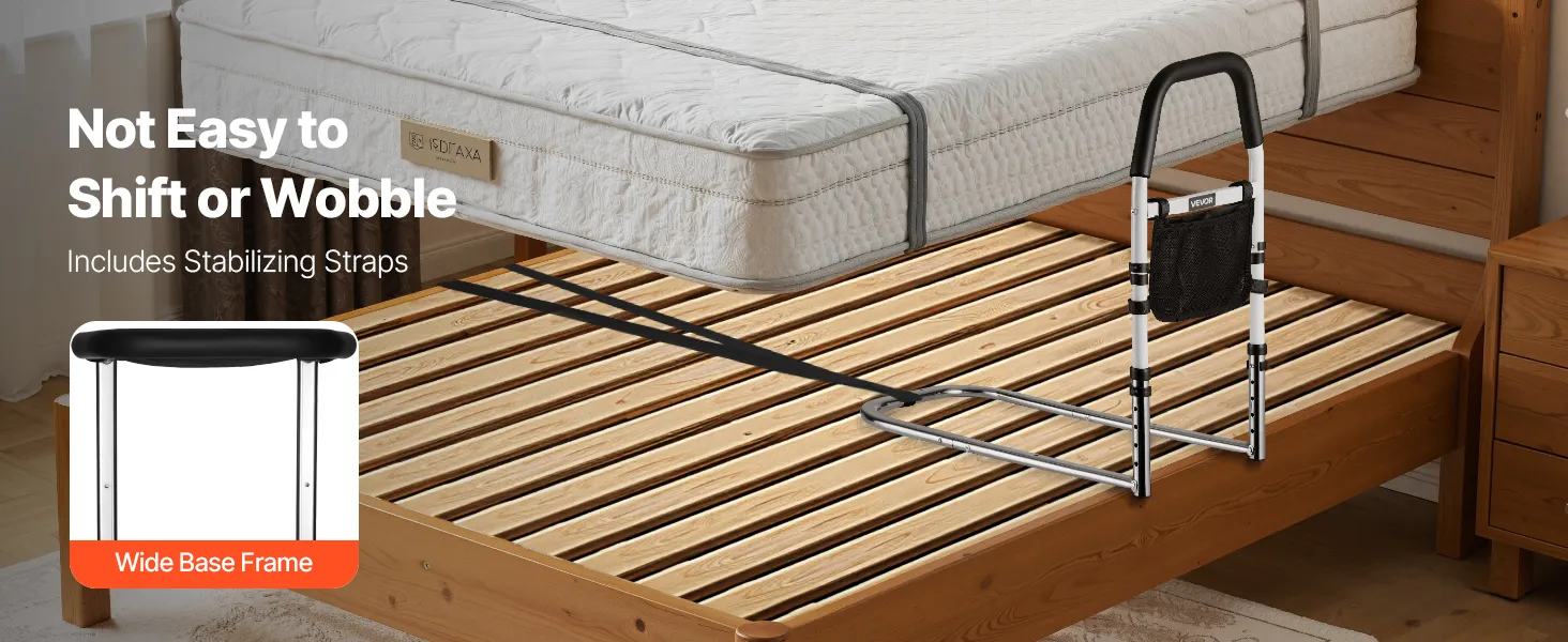 The included straps securely lock the rail in place, avoiding wobbling or shifting during use. The widened base frame increases the contact area, providing steadier support.