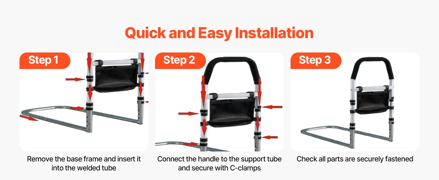 The bed assist rail is simple to set up—no complex tools or professional skills required, allowing users to install it quickly and effortlessly.