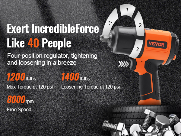 • High Performance: VEVOR õhu löökmutrikeeraja pakub twin hammer mõju mehhanism, mis tagab kuni 1400 suu-naela mutter lõhkemiseni pöördemoment, tegeleb kokkupanek ja lahtivõtmine rakendused, auto remont ja hooldus erakordse jõudluse ja kontrolli.
