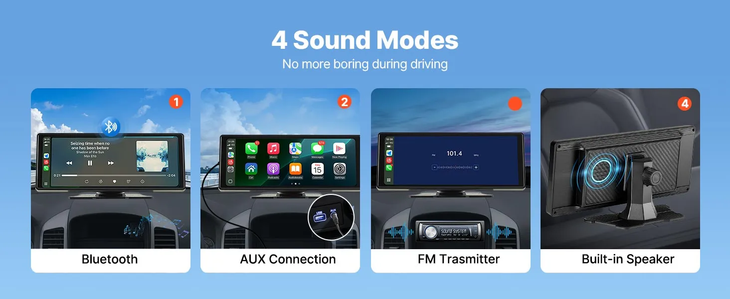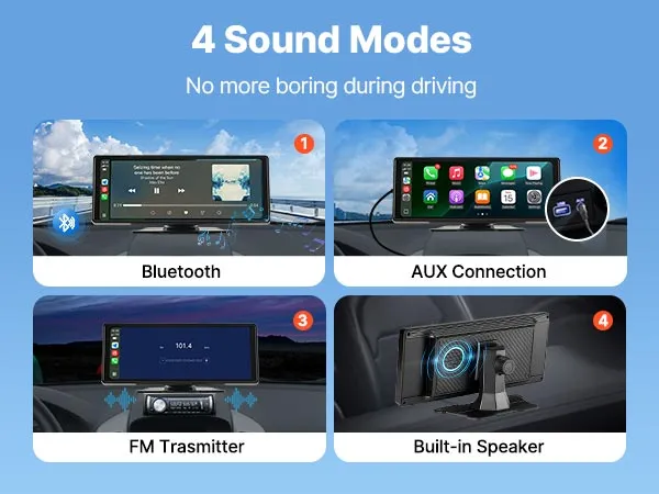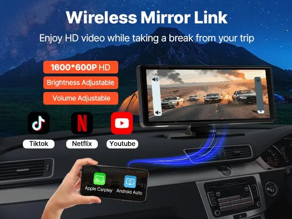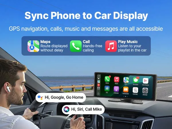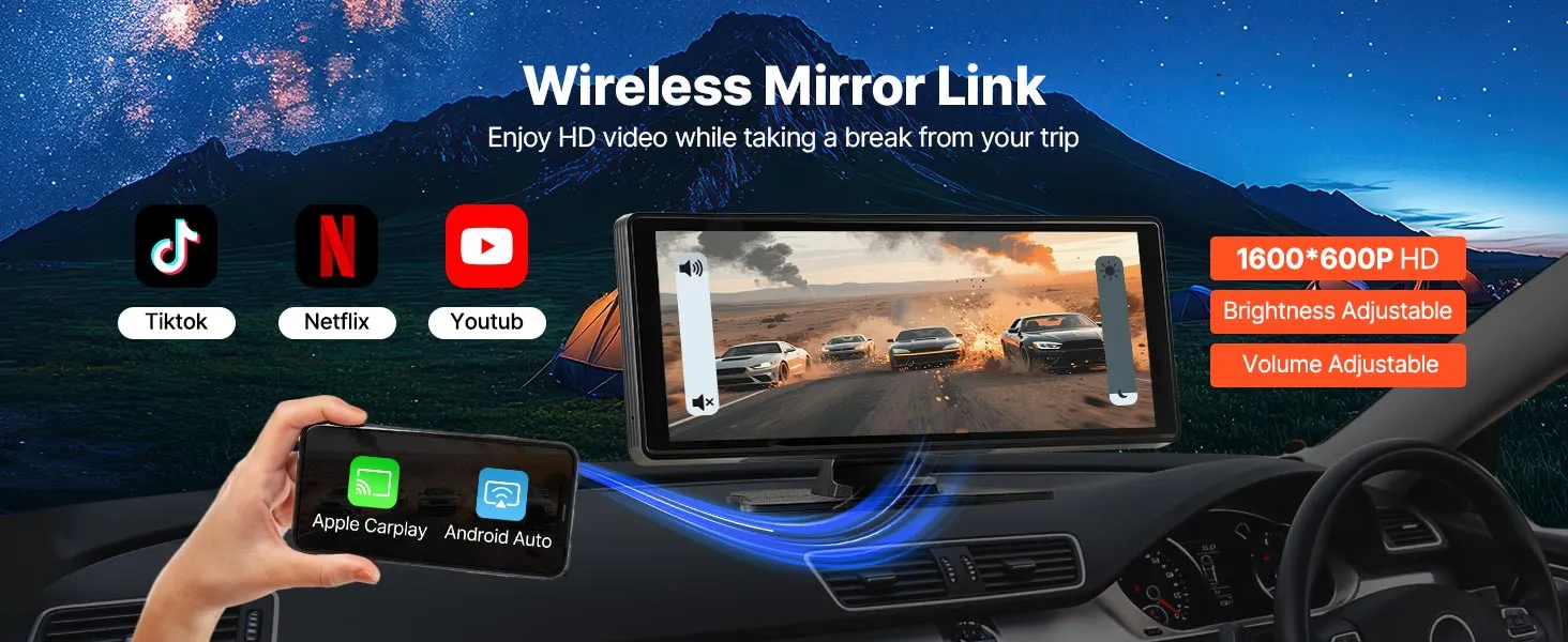 VEVOR Wireless Car Stereo, 254 mm HD Portable Radio Touch Screen Compatible with Apple CarPlay and Android Auto, CarPlay Screen for Car with Voice Control, Mirror Link, Bluetooth, and GPS Navigation
