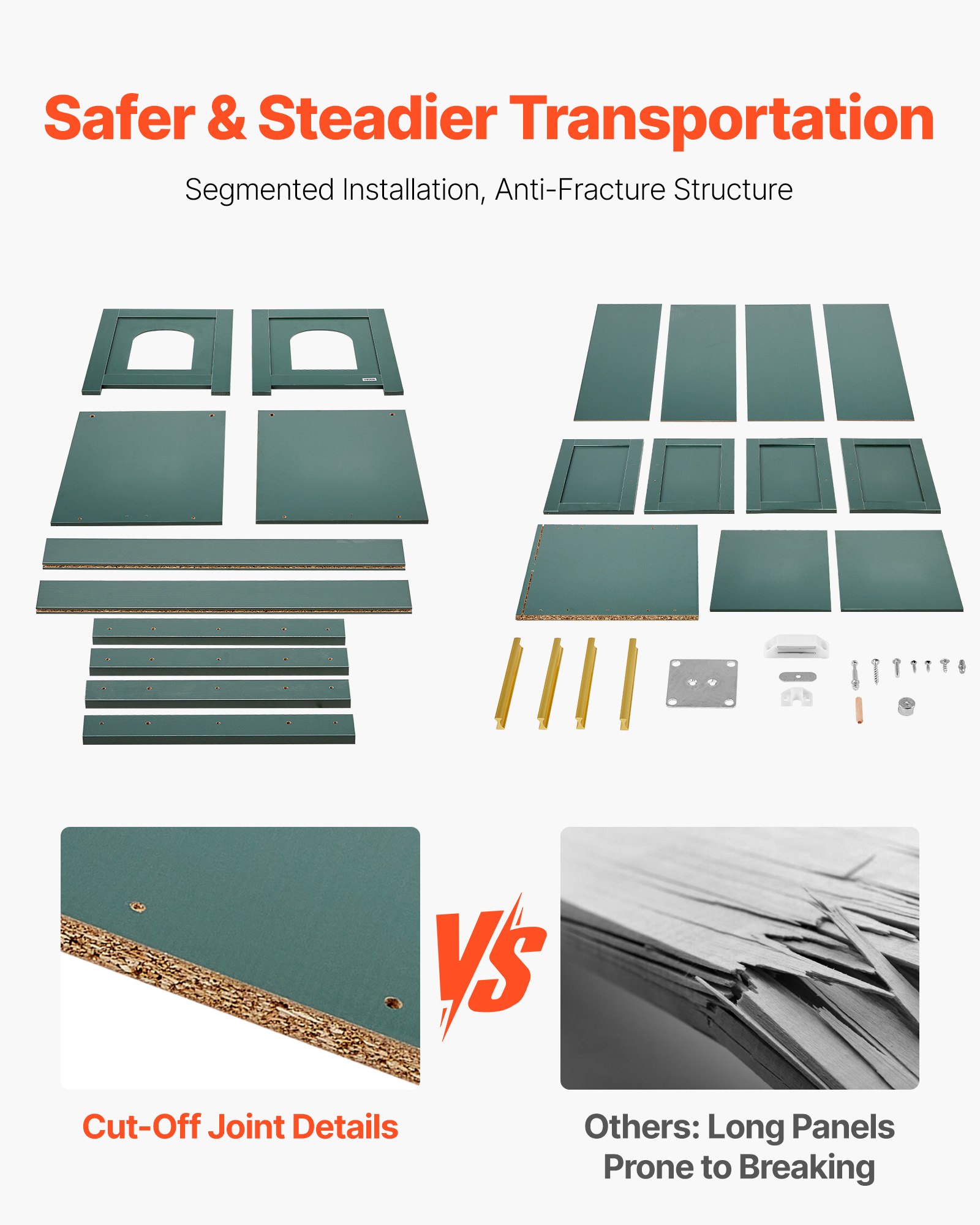 Built from particle board to support up to 150 lbs, with a roomy interior and low entry for easy access. Enclosed design keeps odors contained while vents maintain freshness. Comes with all hardware and a numbered illustrated manual for quick setup. Finished in vintage green for a stylish look.