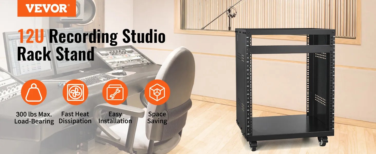 Our audio equipment rack features a semi-open design that provides easy accessibility and ample space. With complete accessories and a solid metal structure, it supports up to 500 lbs (226.8 kg), allowing you to keep your gear secure and organized, such as A/V gear, amplifiers, and more.