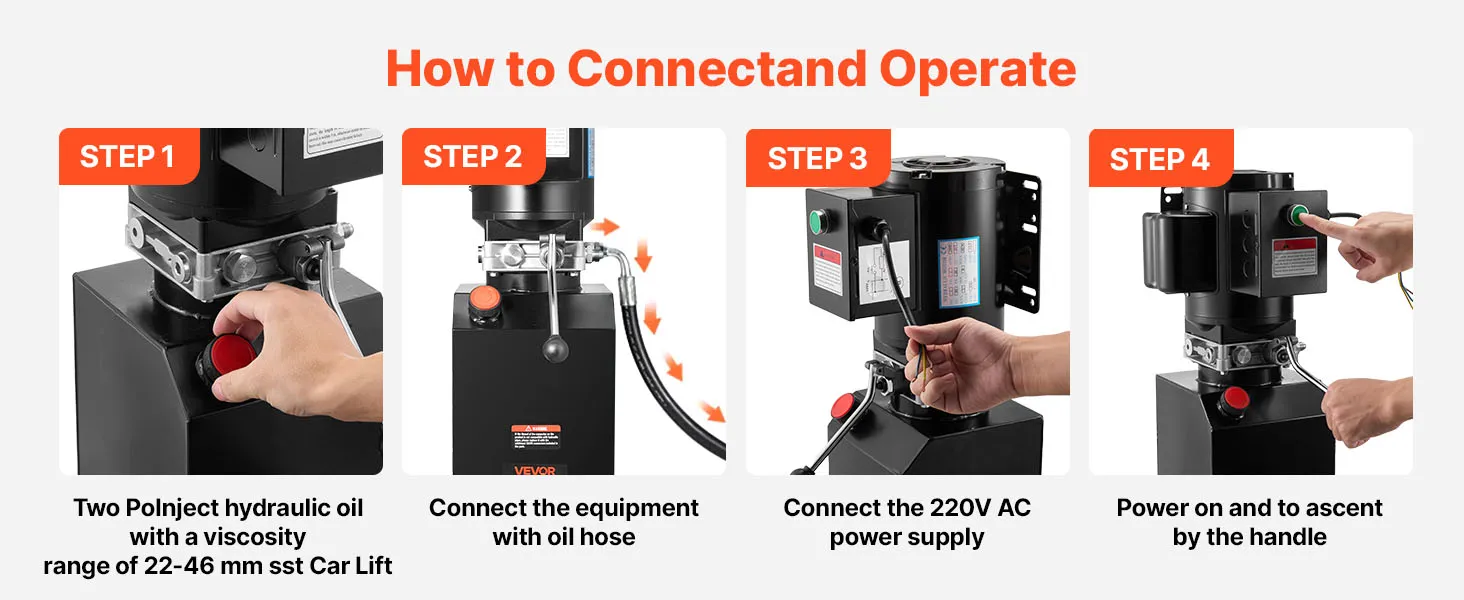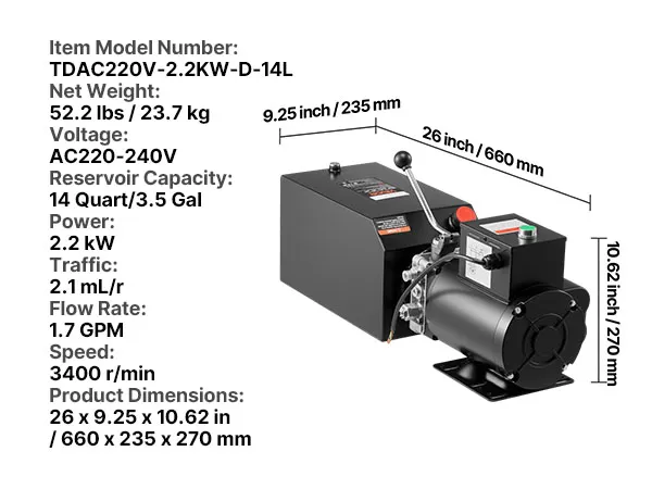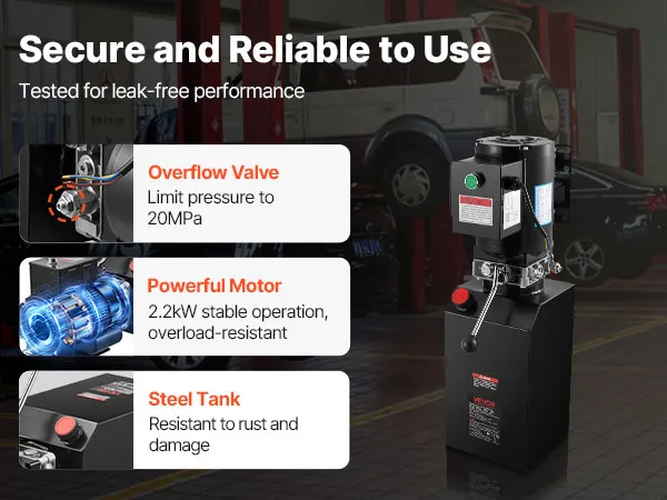 This dump trailer hydraulic pump supports compatible two-post lifts, scissor lifts, semi-electric stackers, punch presses, and aerial work platforms. You verify specs for your setup before installation.