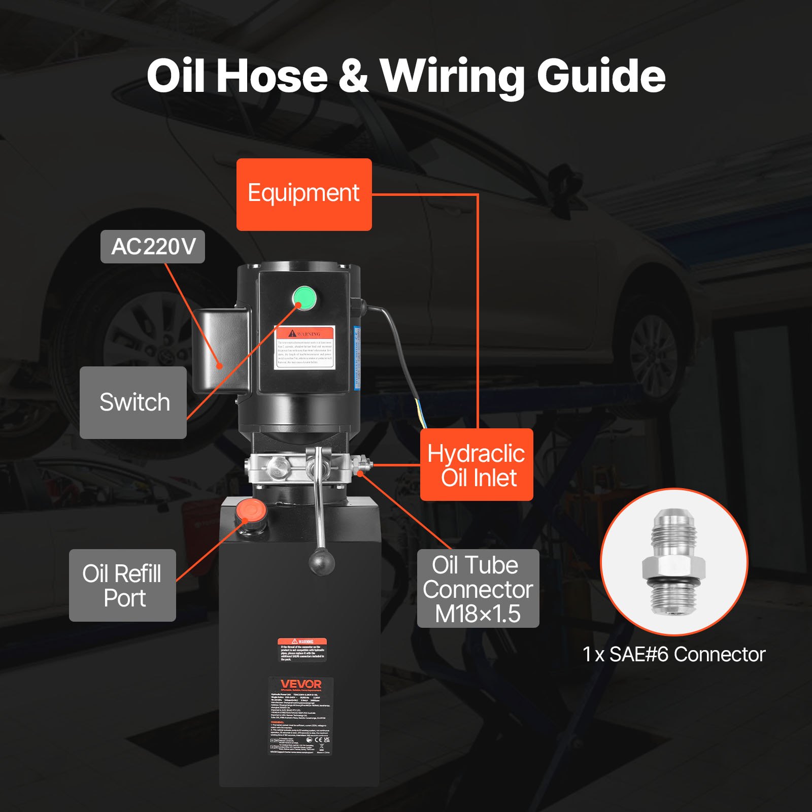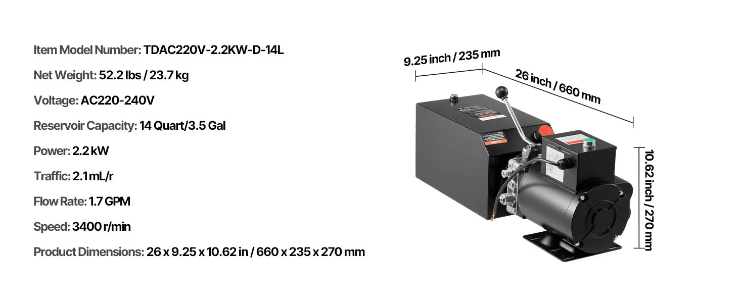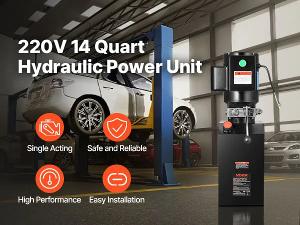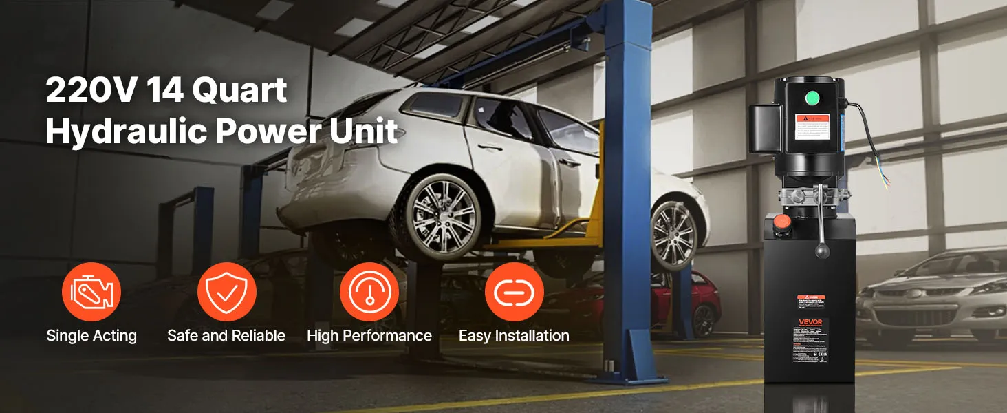 VEVOR 14 L Hydraulic Power Unit, Single Acting Steel Dump Trailer Pump, 22 MPa Max Relief Pressure & 6.3 L/min Flow Rate, 220-240V Hydraulic Pump with Metal Reservoir for Dump Trailer Car Lifting