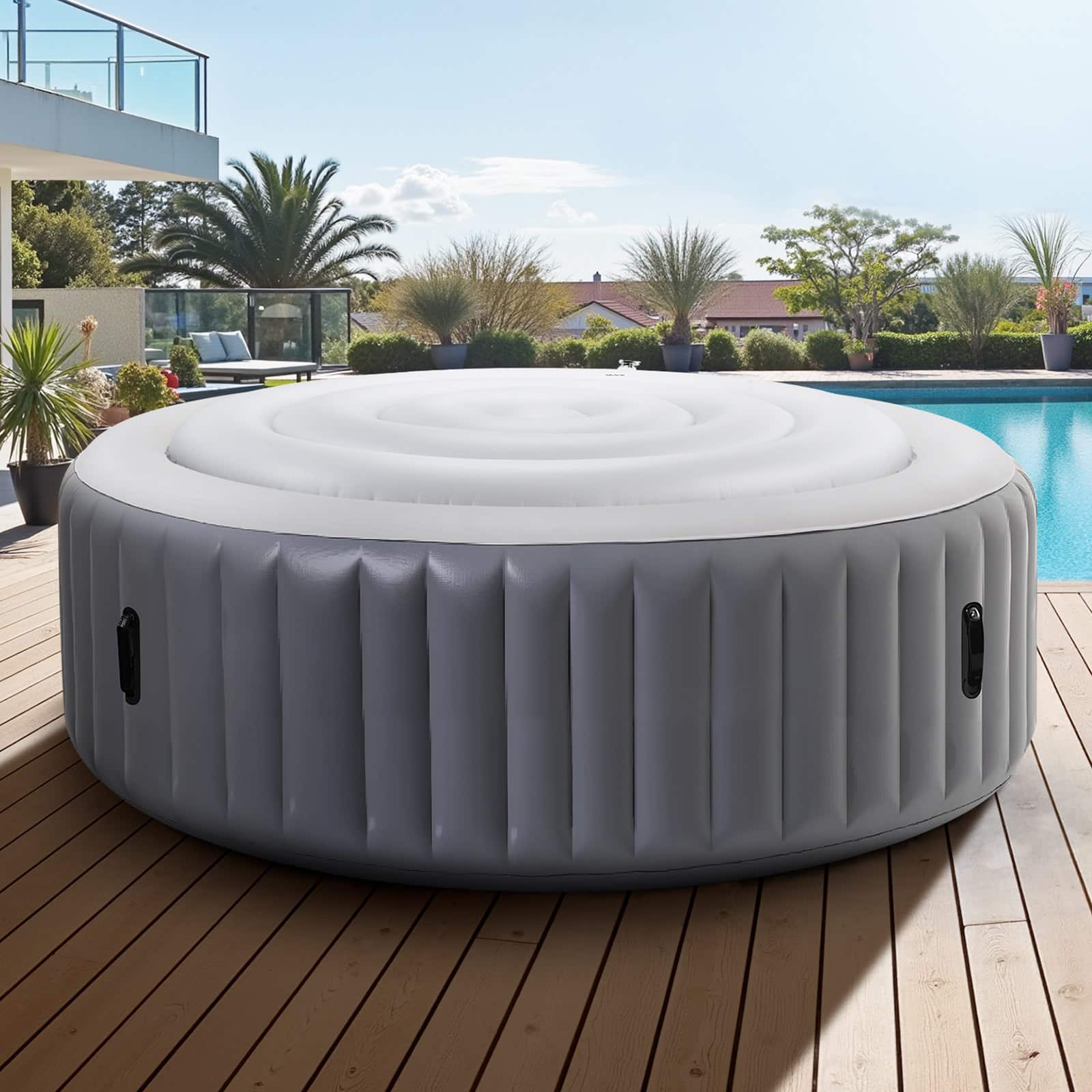Täispuhutav väljas mullivann kate pakub usaldusväärset kaitset sinu mullivann ja pikendab selle eluiga.. See on ilmastikukindel ja kergesti vastu karm väljas ilm nagu päikese käes, tugev vihm ja lumi, mis annab igakülgset kaitset oma kümblustünn kõigis ilmastikutingimustes.