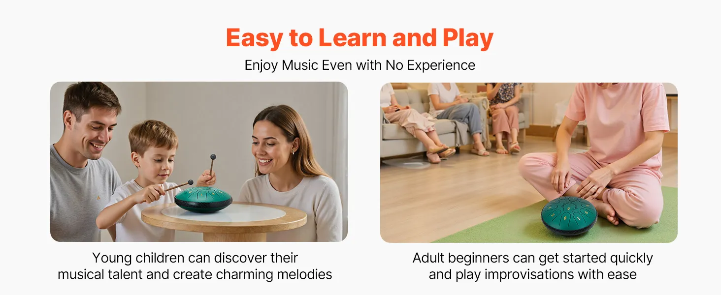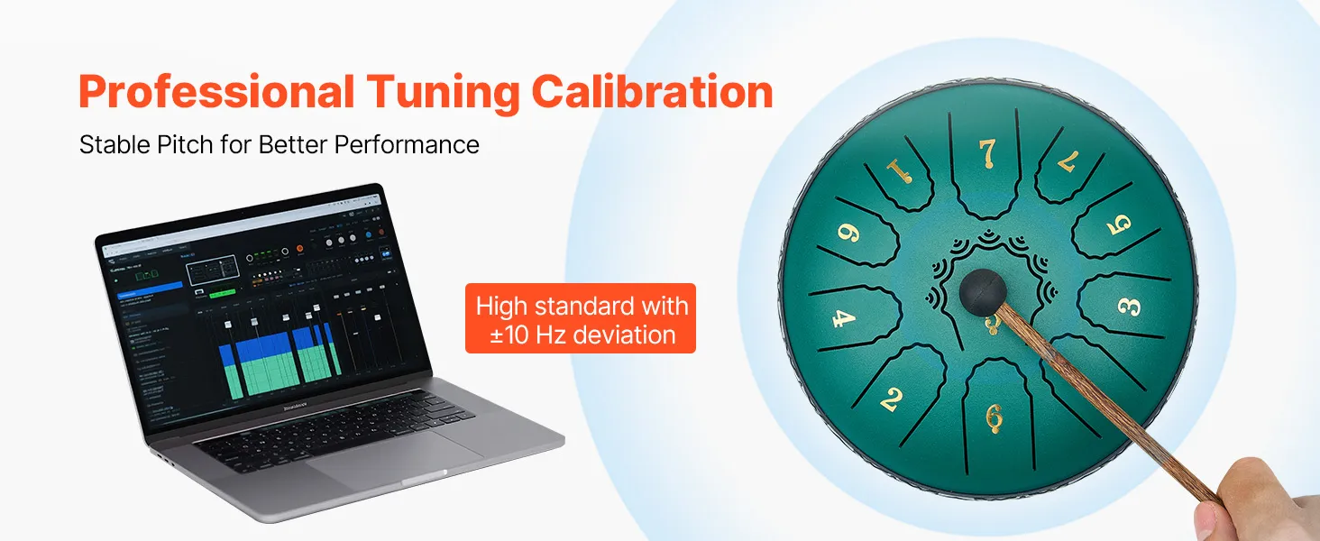 Our tongue drum is precisely tuned by professional tuners for accurate note. It ensures the played melody is harmonious and beautiful. Combined with premium materials, the pitch remains stable and is not easy to deviate with long-term use.