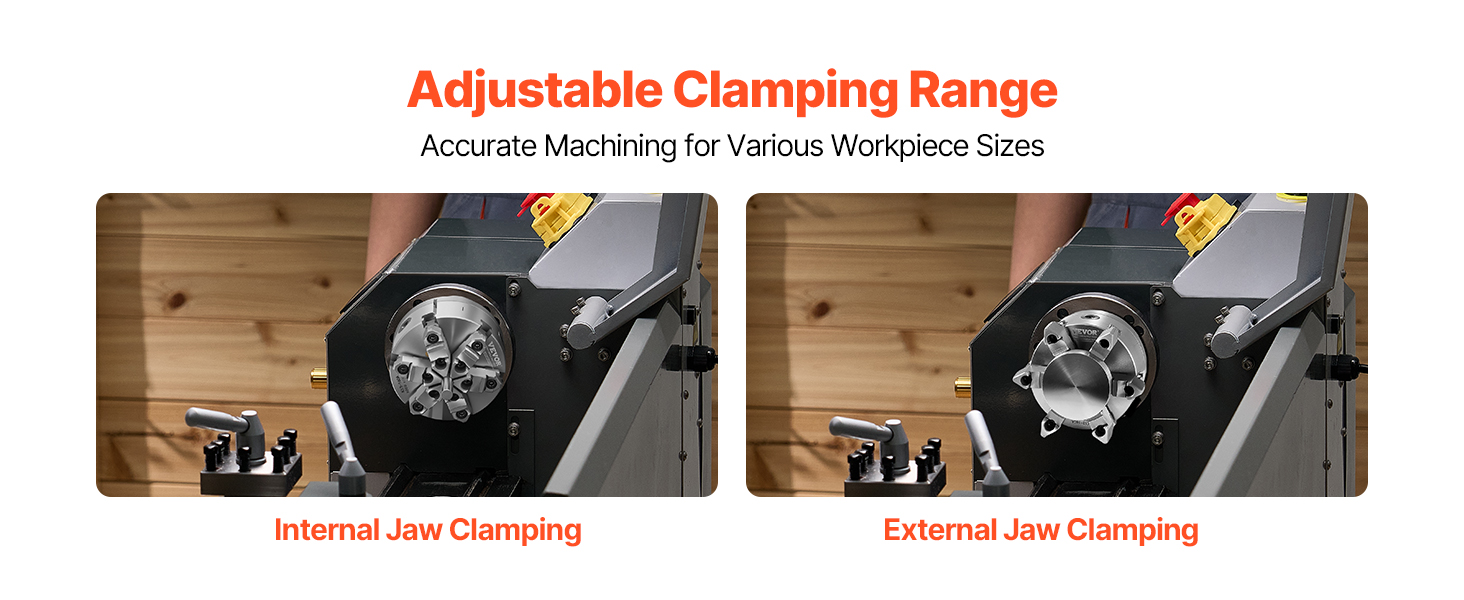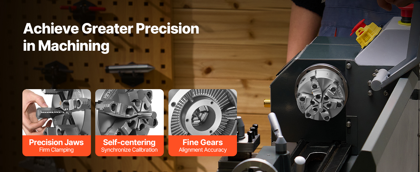 Our lathe chuck with backing plate achieves faster, steadier machine connection. Built from premium HT300 cast iron, jaw hardness ≥53 HRC for exceptional durability. The self-centering design ensures high-precision clamping ranging from 0.12 in to 5.71 in with 1.57 in I.D and 6 in O.D.