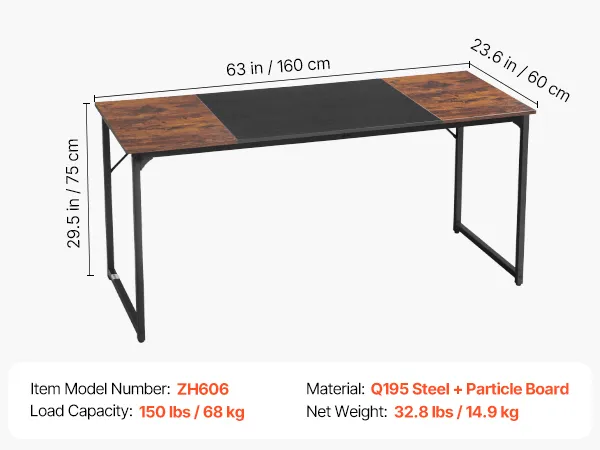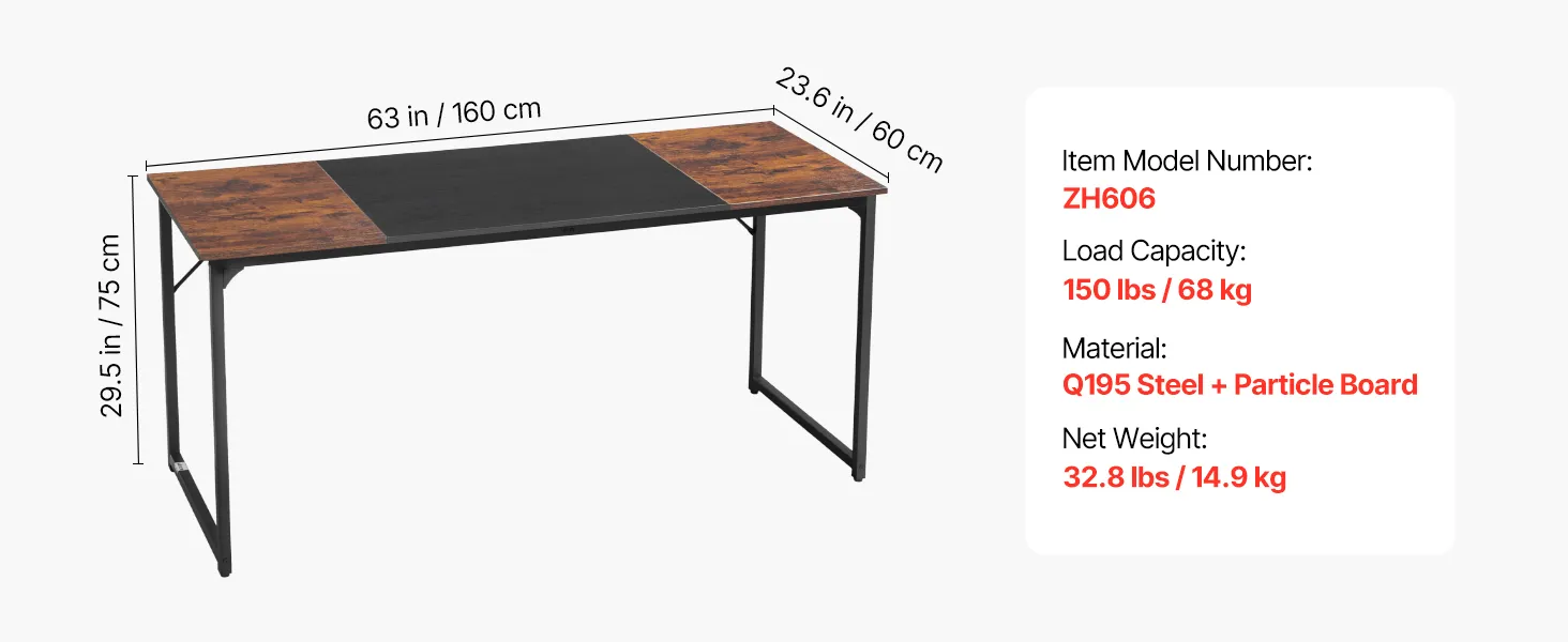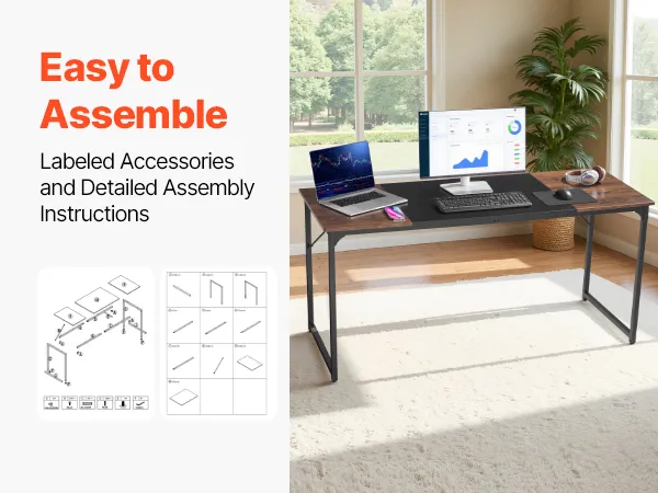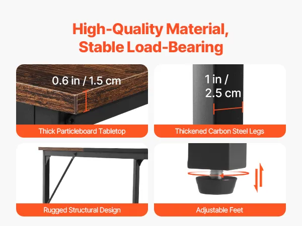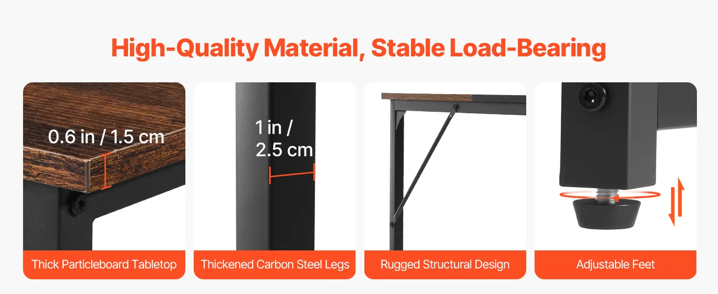 A thick particleboard top and a rust resistant carbon steel frame support long term use, the reinforced base and adjustable feet keep the desk steady with less wobble.