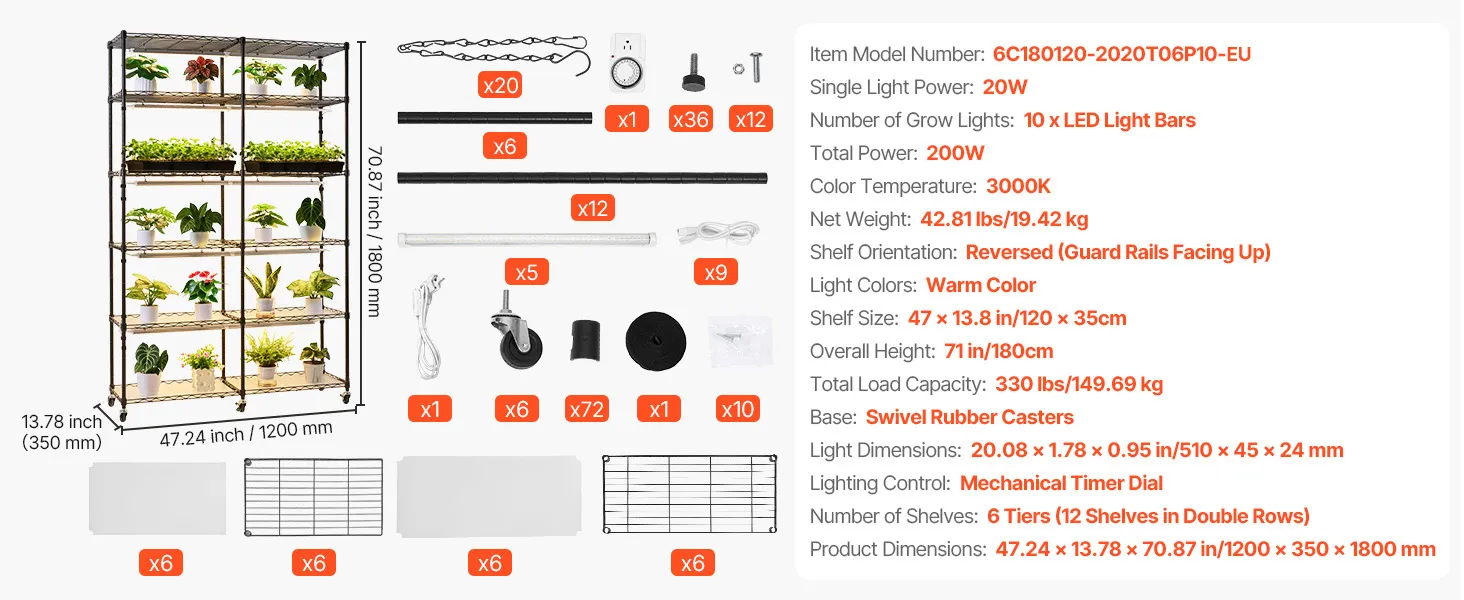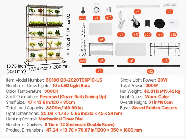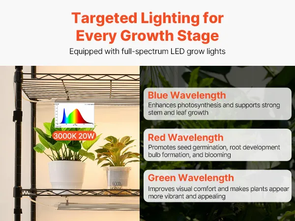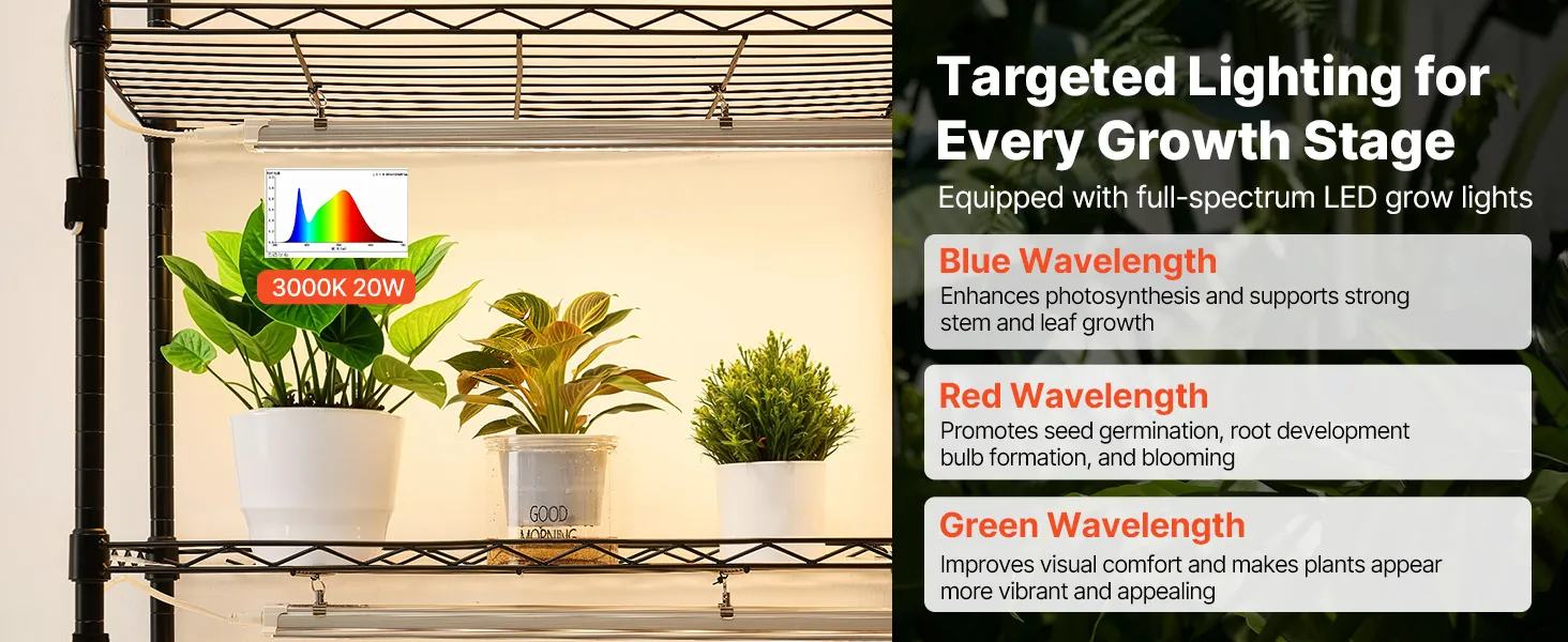 The grow light shelf Includes all accessories and clear instructions. No tools or complex steps required—set up quickly and enjoy stress-free indoor gardening.