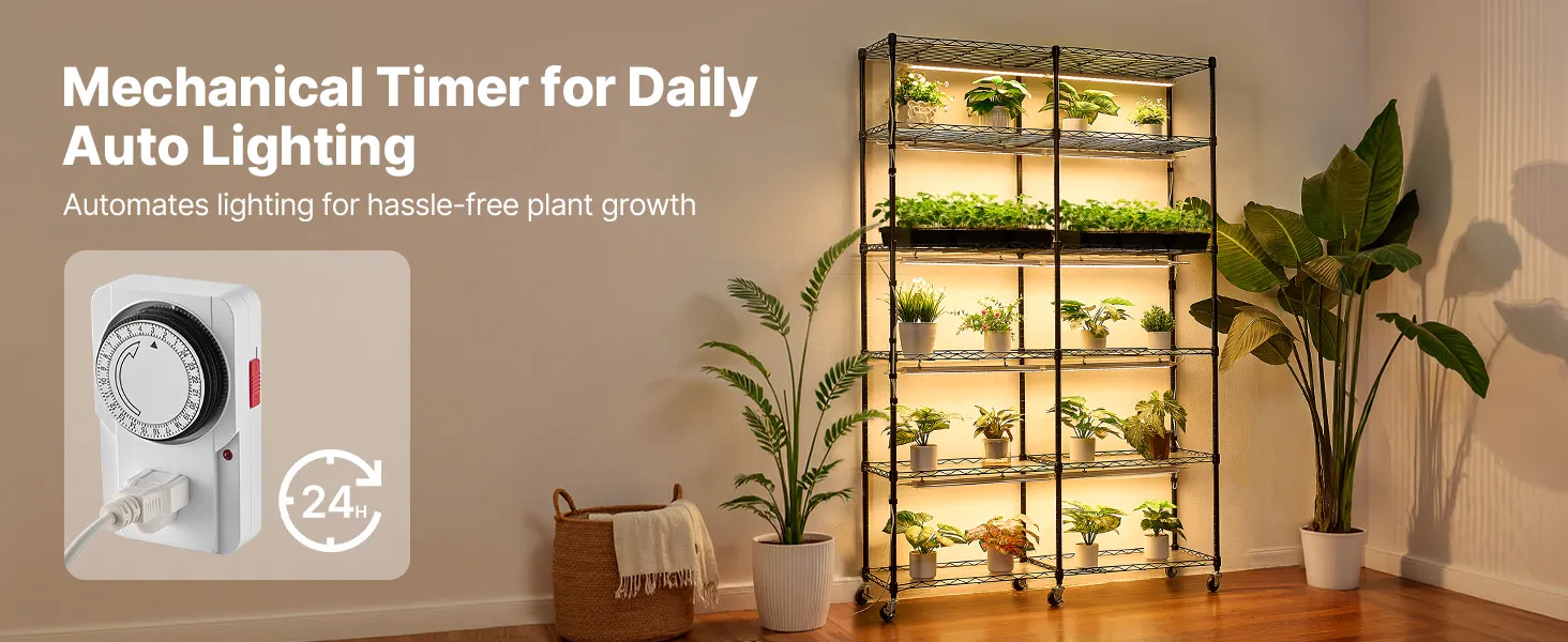 Simple rotary timer requires just one setup for daily automatic on/off cycles. Even while traveling, your plants get consistent care without worry.