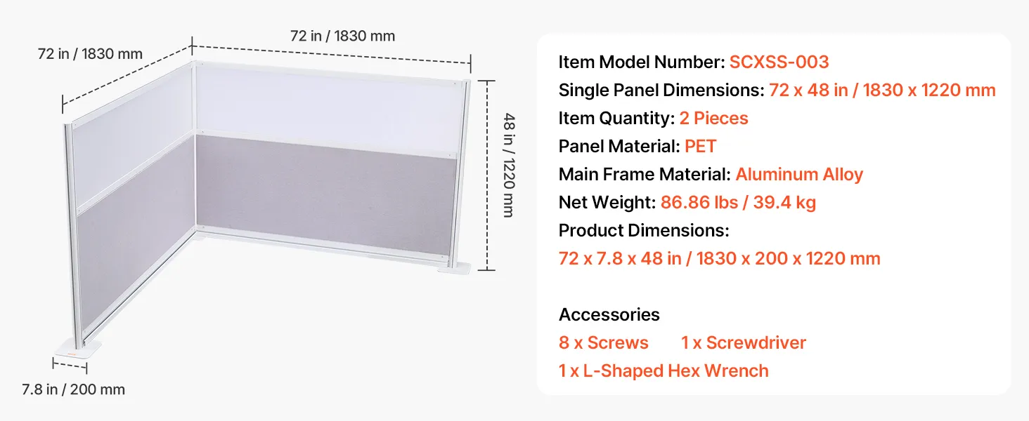 • Enhanced Privacy: The VEVOR 2-pack, 1.83m x 1.22m office divider privacy partitions effectively reduce visual distractions, protect your privacy, enhance focus and work efficiency. Easily create a quieter and more private space for working, studying, or relaxing