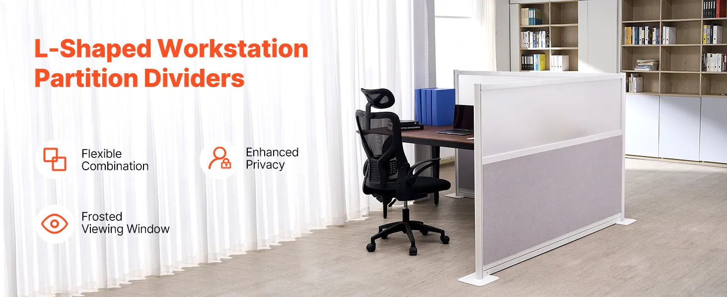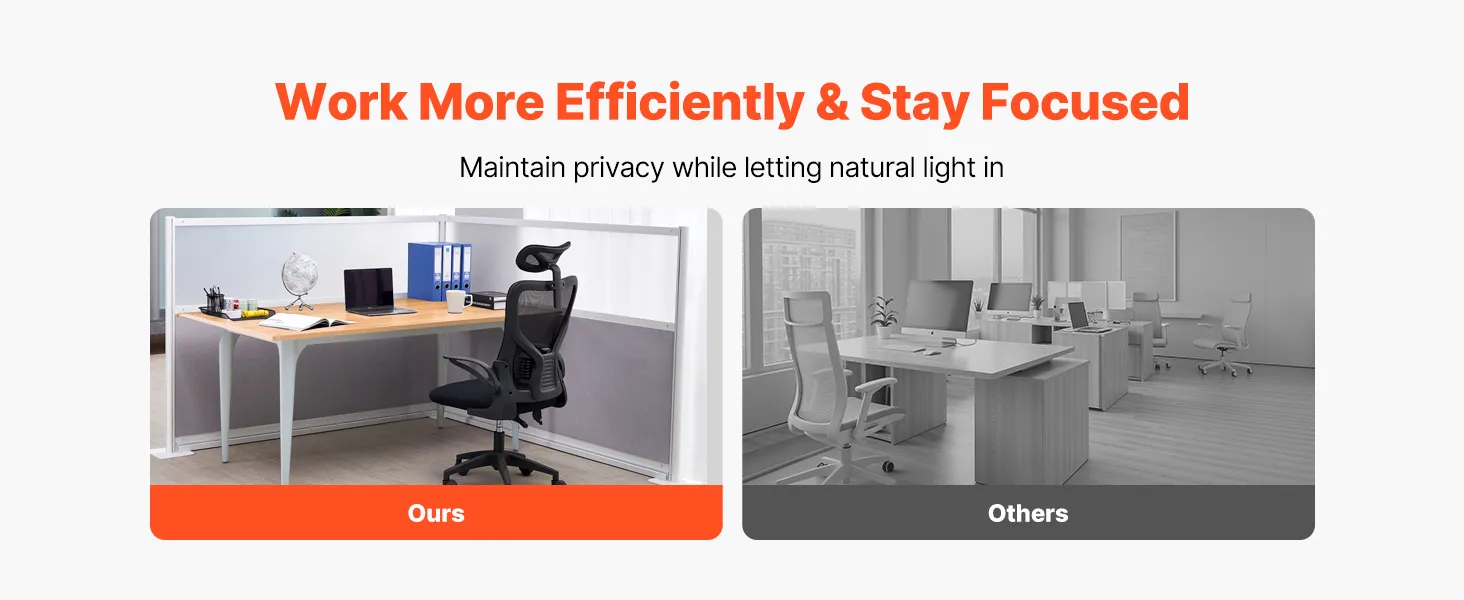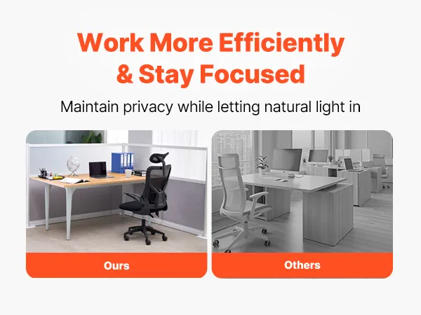 • Visual Windows: Our workstation partition wall features frosted acrylic windows, effectively blocking visual distractions while allowing glare-free natural light to pass through, keeping your workspace bright yet private