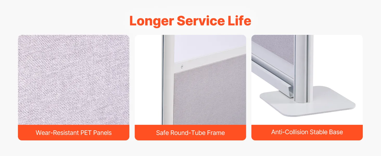 • Durable to Use: This freestanding cubicle partition features wear-resistant double-layer PET fabric panels, sturdy round-tube frame and a stable, anti-collision base for durable use. Neutral color blends seamlessly into a variety of office environments