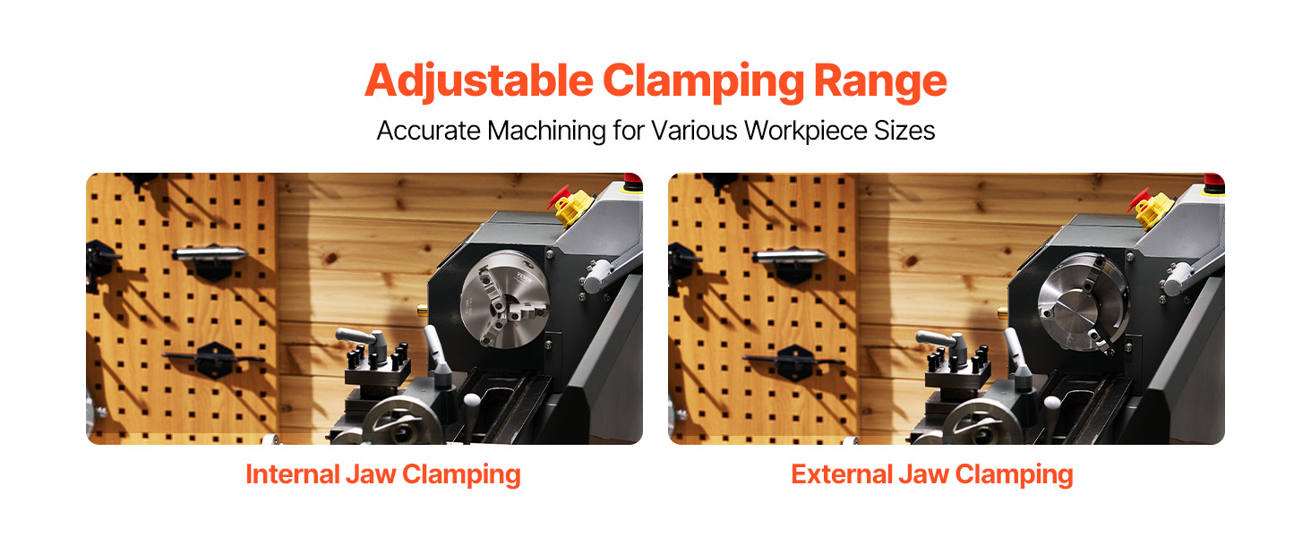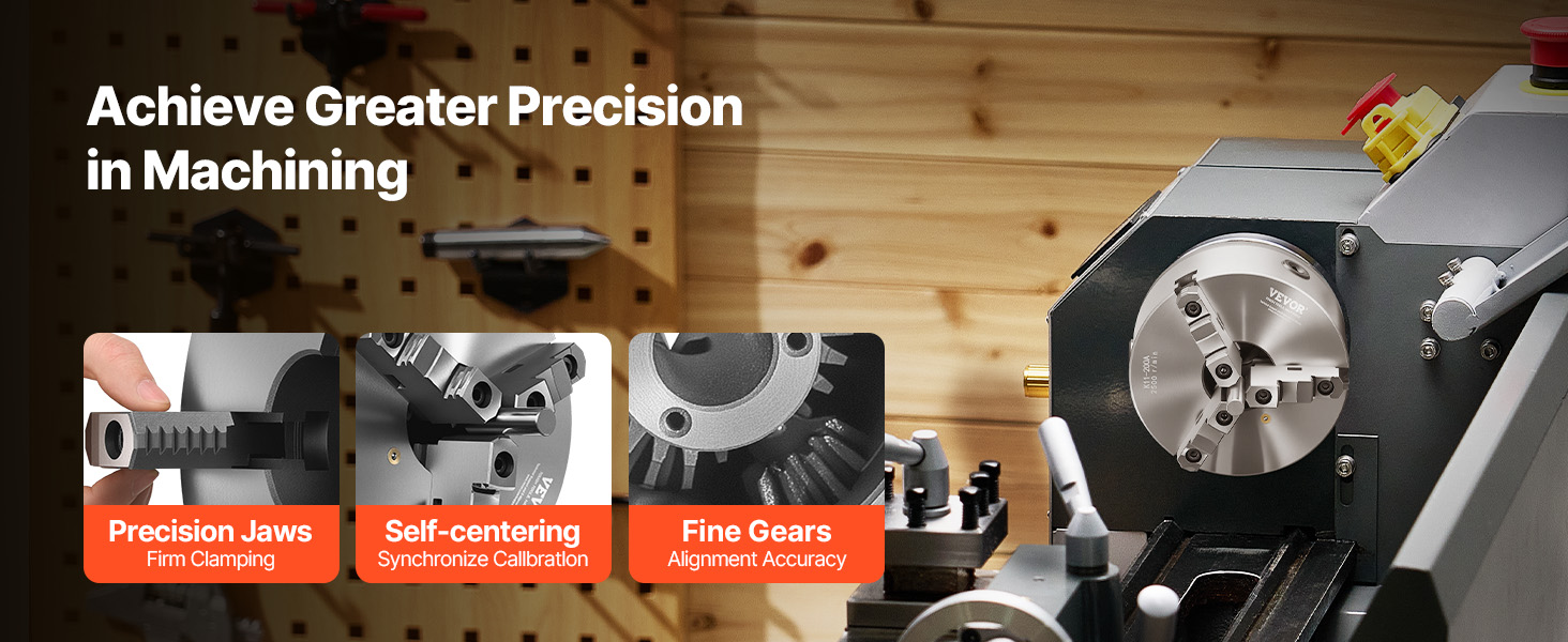 Our lathe chuck with backing plate achieves faster, steadier machine connection. Built from premium HT300 cast iron, jaw hardness ≥53 HRC for exceptional durability. The self-centering design ensures high-precision clamping ranging from 0.16 in to 7.87 in with 2.56 in I.D and 8 in O.D.