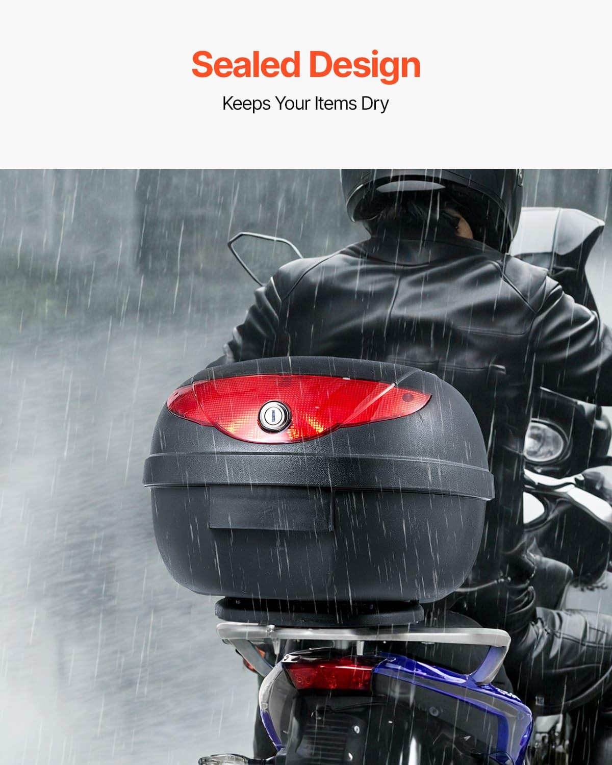 VEVOR Motorcycle Top Case, Universal Durable PP Material Motorbike Tail Box with Reflective Panel, 24L Waterproof Detachable Motorcycle Top Box with Multi-Hole Base, Fit for 99% of Motorcycle Frames