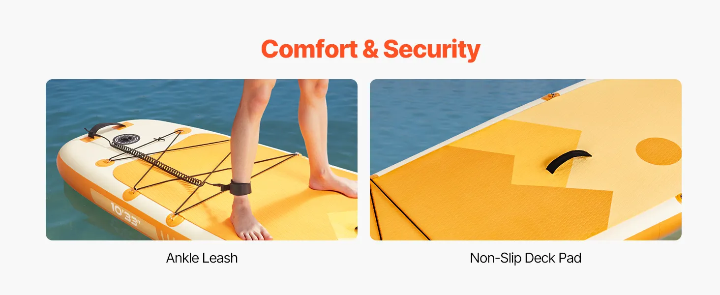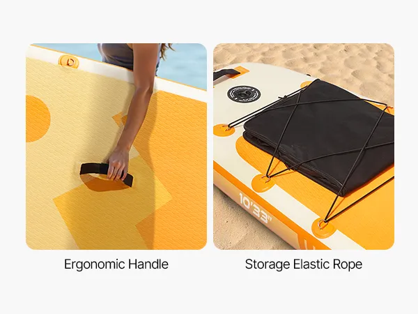 • Military-Grade Durability: The stand up paddle board is made with ultra-light, military-grade double-layer PVC, weighing only 10.33 kg. It features high-quality brushed technology for added strength, durability, and excellent resistance to wear
