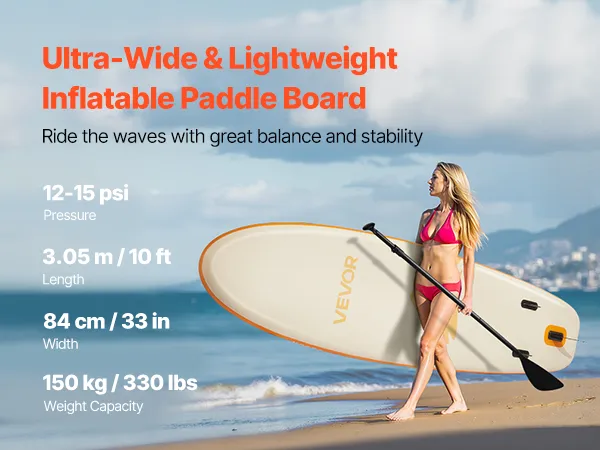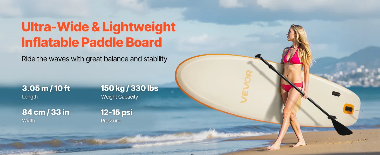 • Extra Wide for Superior Balance: This 3.05 m long, 84 cm wide, and 15 cm thick paddle board offers enhanced stability and balance. Its large contact area is great for solo or family fun, making it perfect for beginners, families, and pets alike