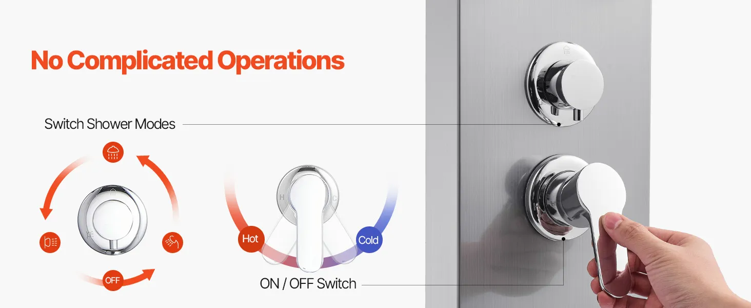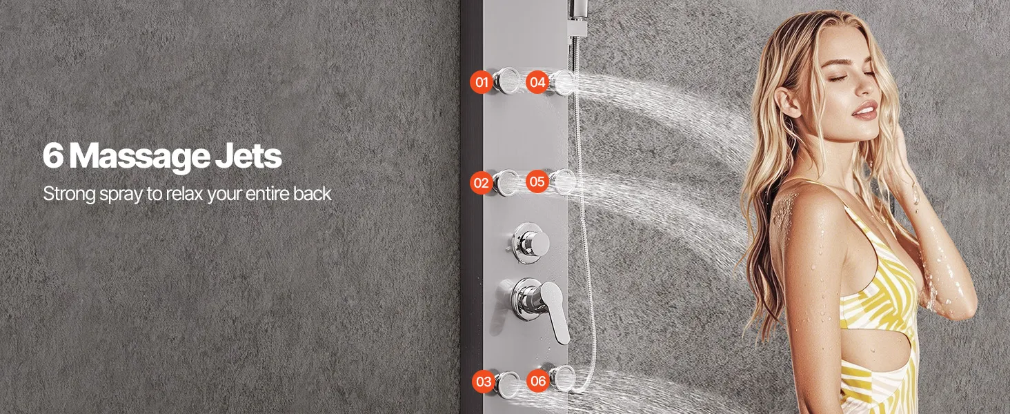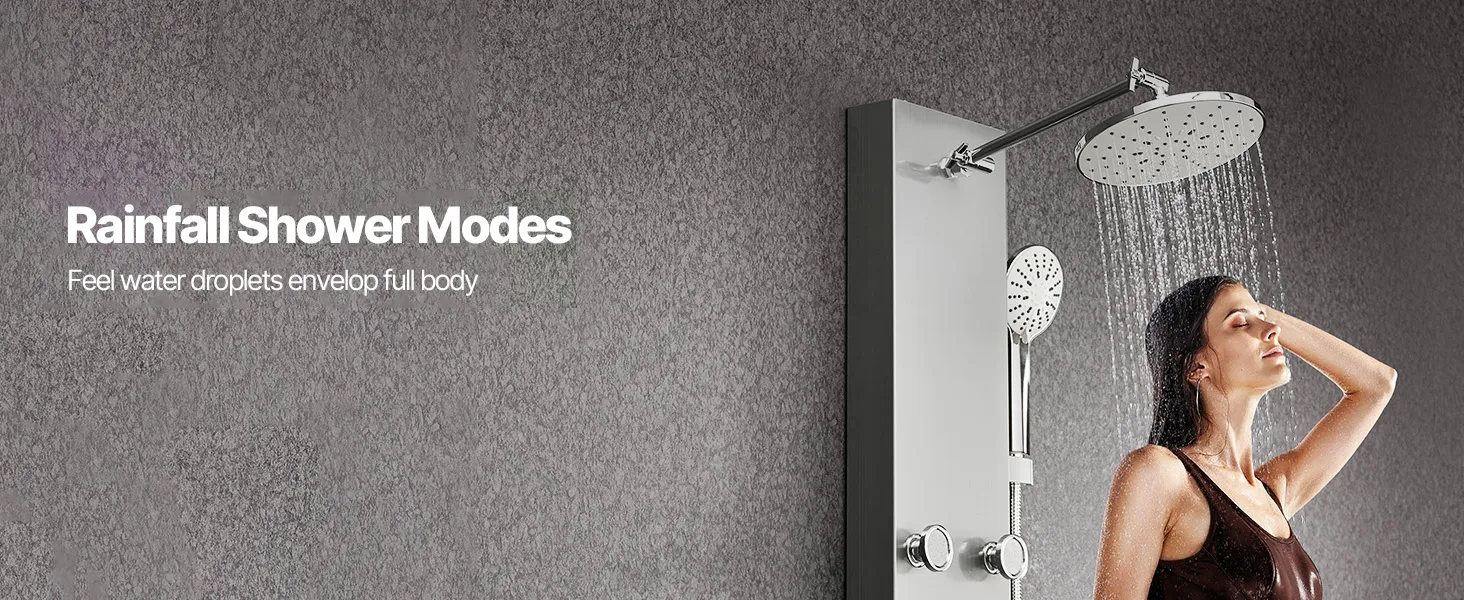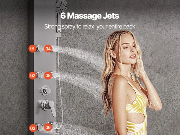 See, dušš paneel tower süsteem on multifunktsionaalne ja kohandatav, et see sobiks teie meeleolu ja vajadustele. Kõrgenenud disain tagab suurema loodusliku vee voolu katvuse kui duši all.