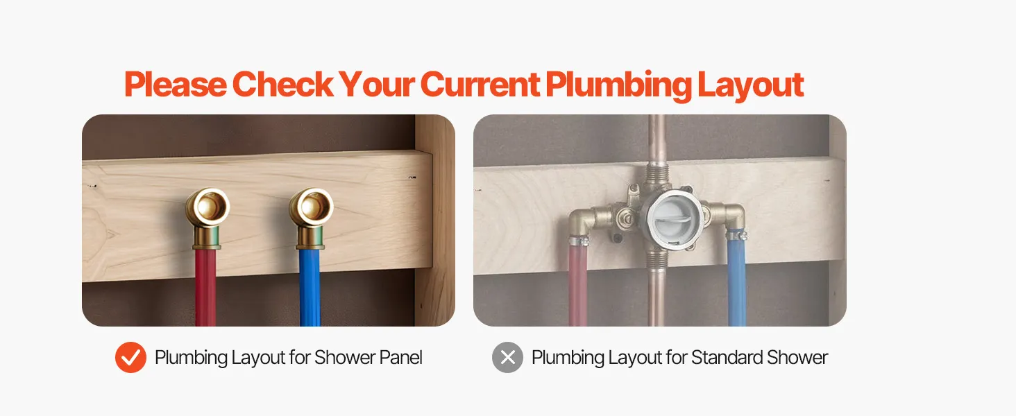 VEVOR Shower Panel Tower System with Rainfall Shower Head, 49 in Brushed Stainless Steel Shower Column, 3-Function Faucet, High Pressure Wall-Mount Rain Massage System with 6 Body Jets and Handheld