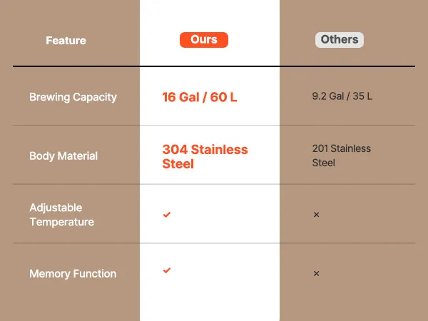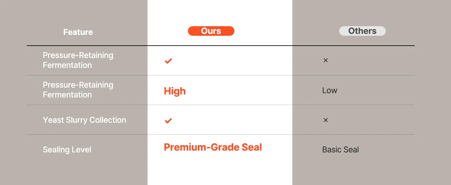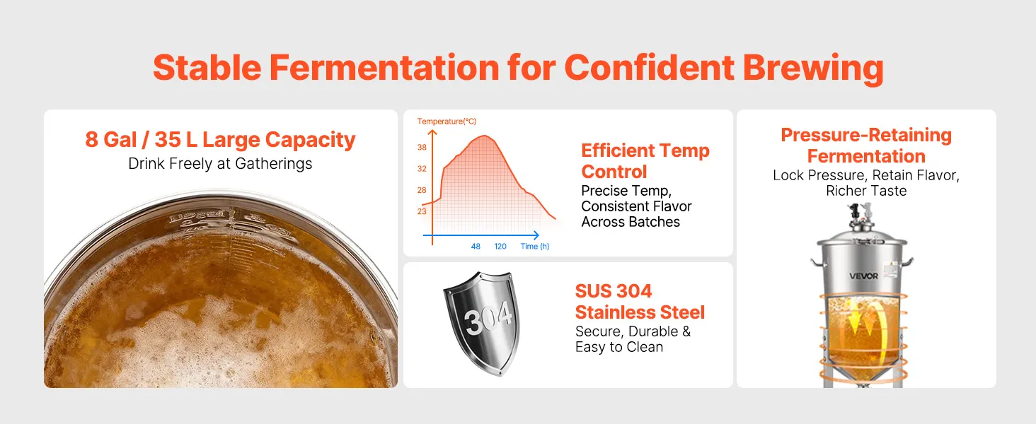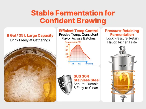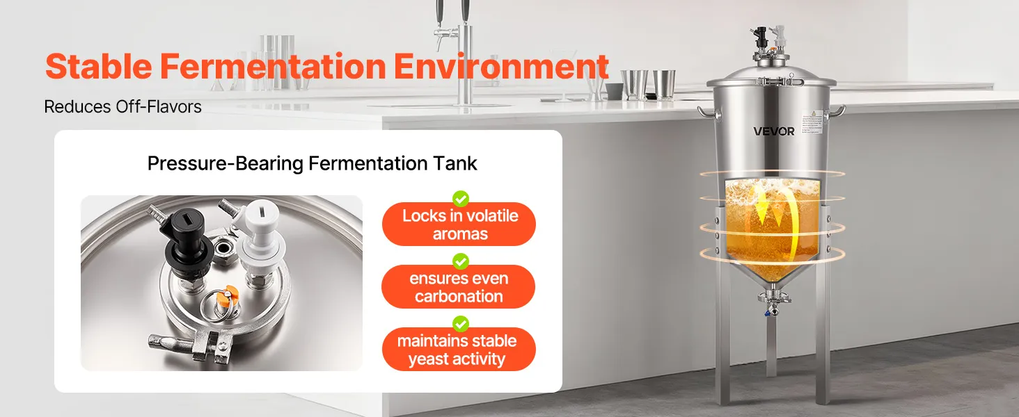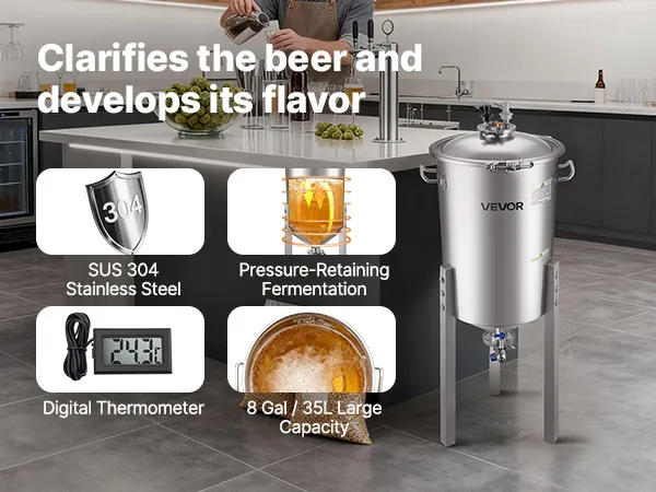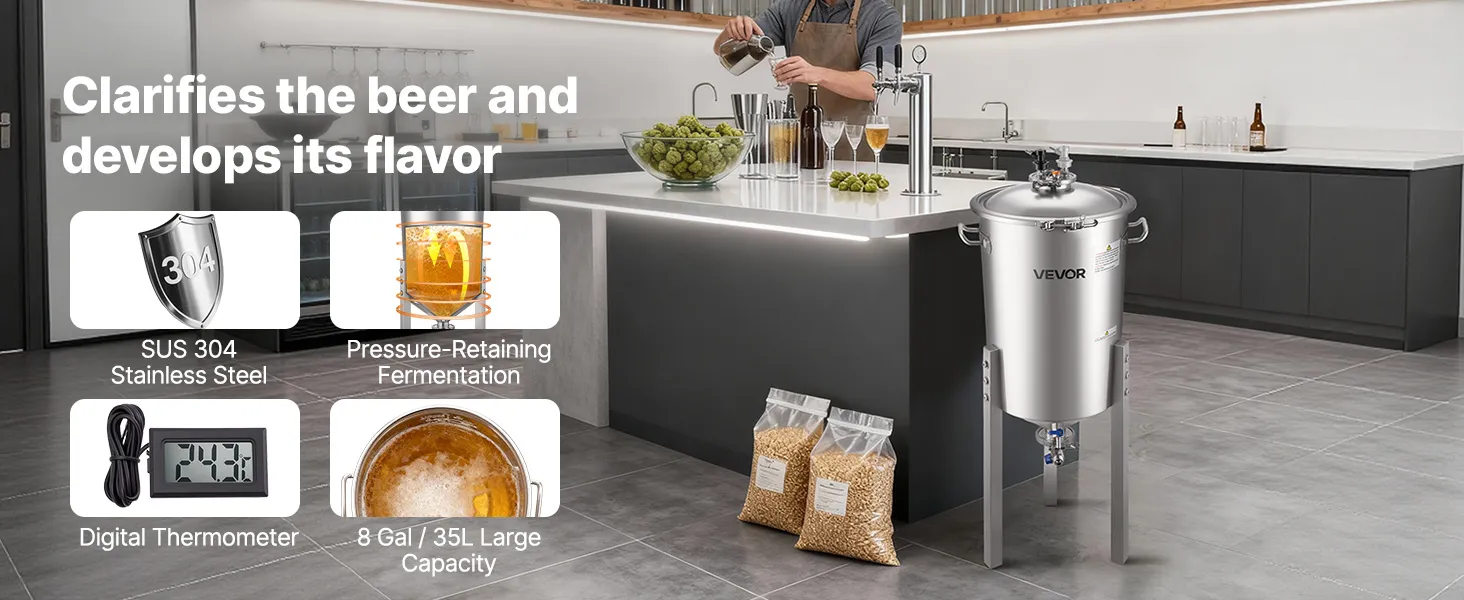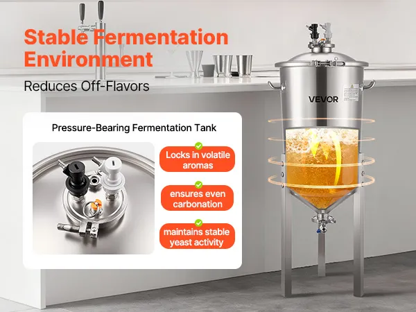 See fermentaator ühendab ühes seadmes kvaliteetse 304 roostevaba terase, survet säilitava kääritamissüsteemi, täpse temperatuuri ja rõhu reguleerimise ning kasutajasõbraliku disaini. Nii kodupruulimise entusiastid kui ka väikese partii õlletootjad suudavad hõlpsasti saavutada professionaalse kvaliteediga sekundaarse kääritamise, tagades iga õllepartii jaoks ühtlase maitse ja usaldusväärse kvaliteedi.