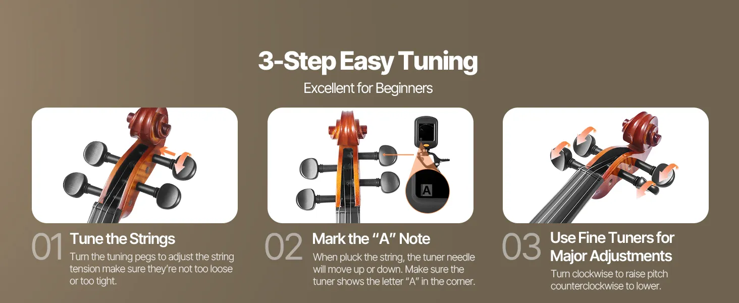 • Kerge Tuuning: tuuner on kaasas viiul, featuring täpne suure avastamine, et tagada iga tuning istungil saavutab ideaalne pigi. Kas sa oled algaja või professionaalne esineja, saate hõlpsasti master tuuning tehnikat