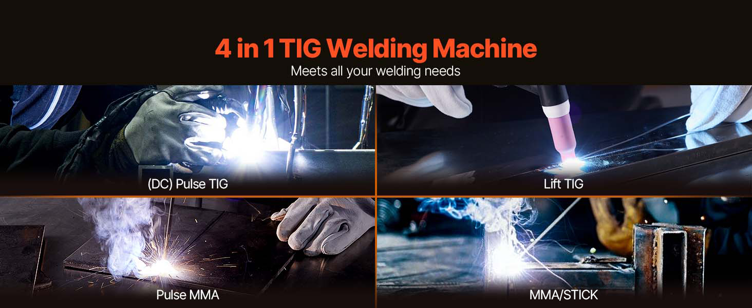 VEVOR TIG Welder, 140A 4-In-1 Welding Machine (Large LED Display) - DC Pulse TIG/DC Pulse MMA/Lift TIG/MMA(Stick), Electric Welder with Synergic Control IGBT Inverter Hot Start