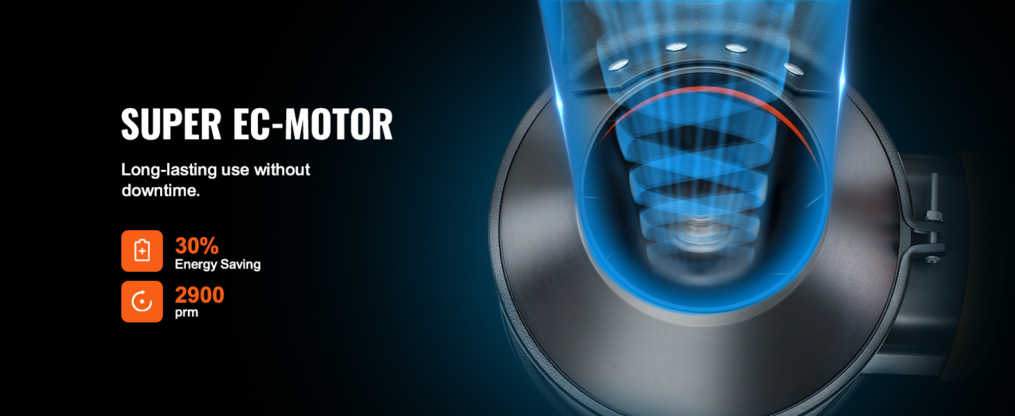 Meie inline kanali ventilaator annab rohkem energiat kui AC mootorid ja vähendab energia kadu 30% võrra, tagades pika tööea.