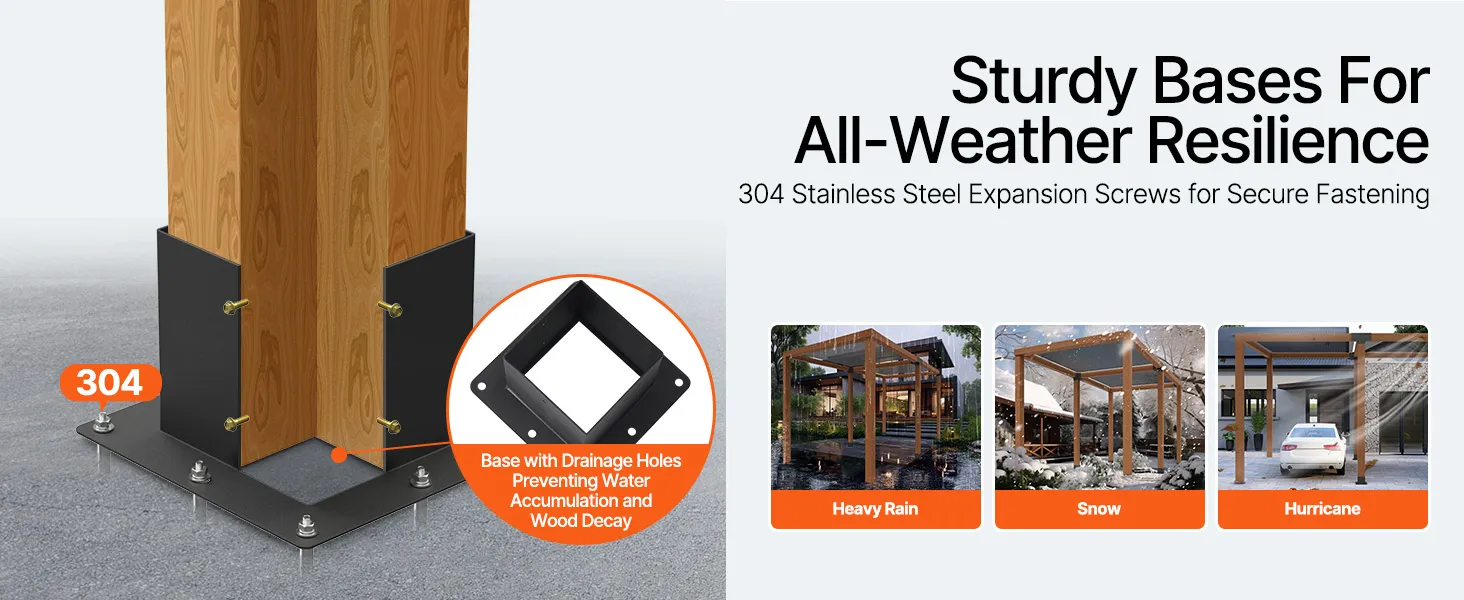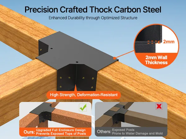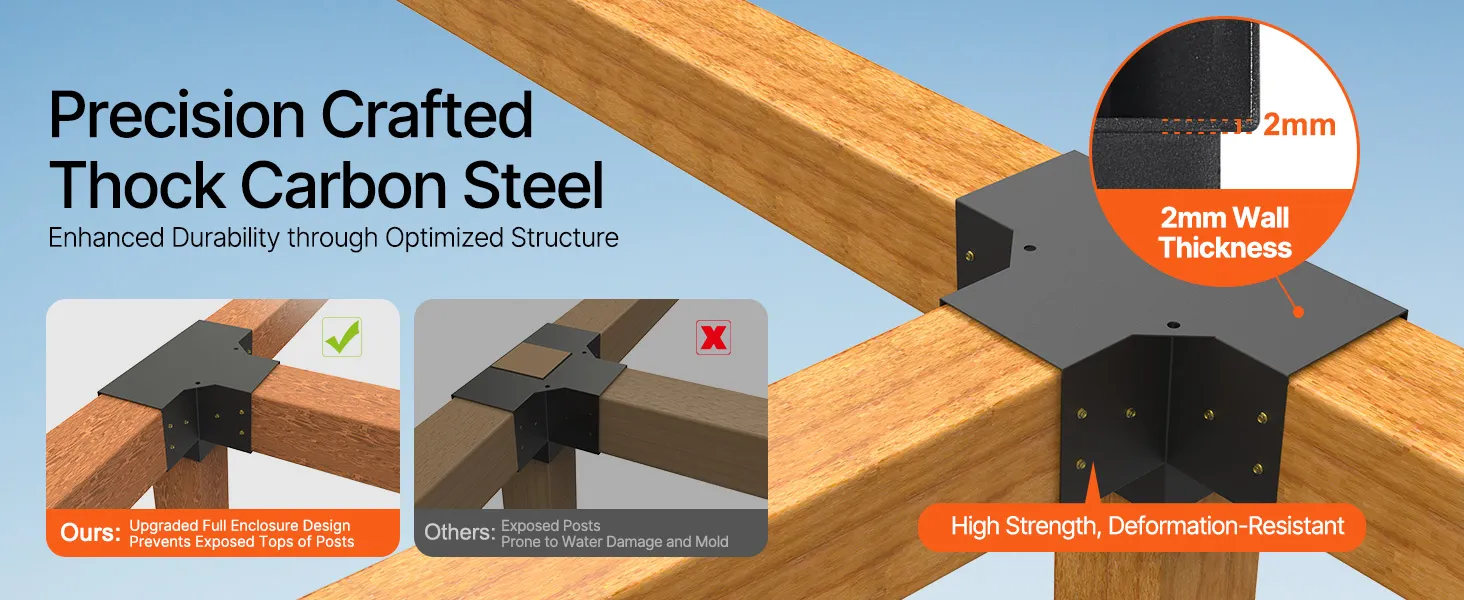 Our brackets, available in multiple sizes and specifications, are compatible with various standard wood posts. Constructed from thick carbon steel plates, they are welded for durability and coated to resist corrosion and rust. Choose us for a secure solution.