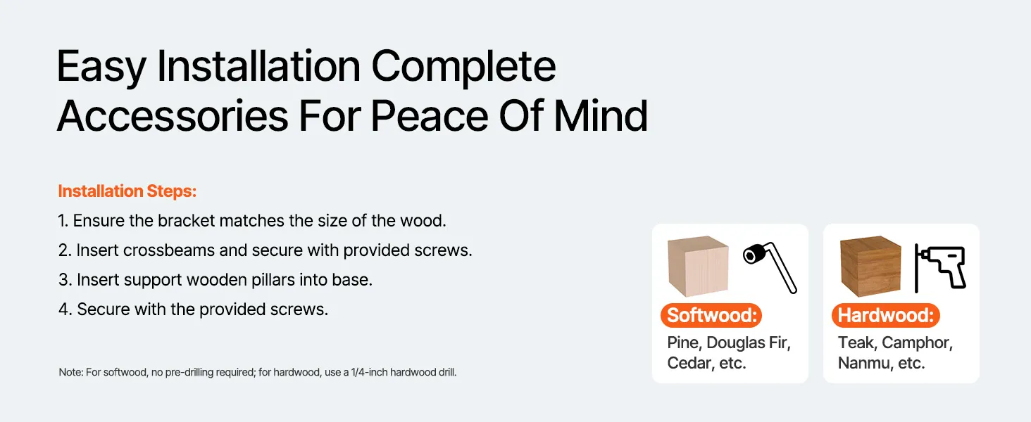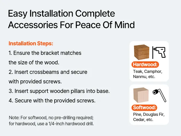 Vastupidav ja tugev, meie neli-viis pergola sulgudes on loodud, et kaitsta puidust talad alates vihmavee ja tugev päikesevalgus.