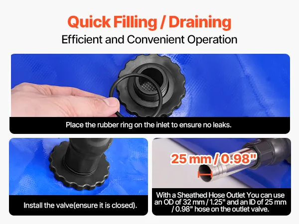 Our collapsible water storage container features large-diameter inlets and outlets, ensuring smooth water flow and easy compatibility with various hoses and high-pressure cleaners. Perfect for home use, camping, and other outdoor activities.